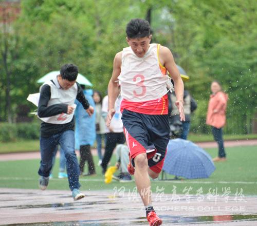 微微细雨中,结束了开幕式,运动会比赛项目正式开始。田径各项比赛将在紧张有序中开展。