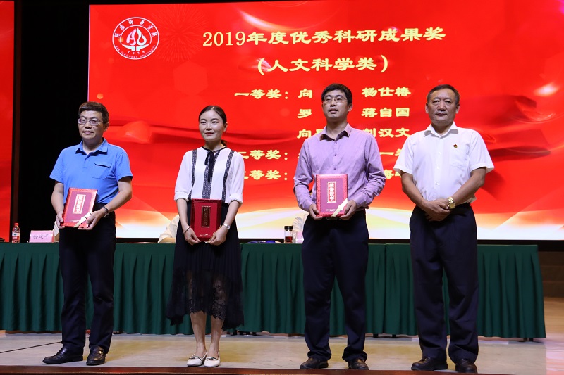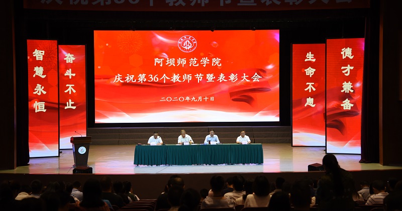 吴昊宣读《中共阿坝师范学院委员会关于2020年教师节表彰决定》,对2020年度优秀教育工作者、十佳教师奖、十佳教师提名奖、优秀青年教师奖、2019年度科研管理工作先进个人奖、优秀科研团队、2019年度优秀科研自然科学类和人文科学类成果奖获得者予以表彰。我校领导分别为获奖教师颁奖。