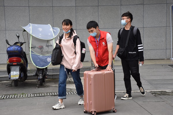 为避免新冠肺炎病毒传播,此次新生报到,学校谢绝家长陪同进校。学生志愿者挺身而出,积极帮助新生完成报到和入住事宜,成了校园内外最繁忙的人。无论是地铁口、校门口、报到点,还是宿舍区、咨询服务处、临时服务点,到处都活跃着他们的身影,使得初秋的阿师处处洋溢着热烈的迎新气氛与欢快的蓬勃朝气。尽管秋风萧瑟,但每一位新生的心都充满暖意,在师兄师姐无微不至的照顾陪伴下,仿佛这里本就是他们的家。学生志愿者们作为师兄师姐,满怀热情欢迎新同学,通过迎新工作传递着阿师精神与温暖。阿坝师范学院正在张开双臂,拥抱着每一位阿师人,欢迎他们加入阿坝师范学院这个温暖的大家庭。