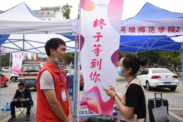 【本网讯】经学校周密部署,各部门认真落实,阿坝师范学院切实做好疫情防控工作及迎新工作。9月15日至16日,我校2020级本科、本科预科新生正式报到入学。各学院、各部门提前做好准备,完善2020级新生报到接待工作,使广大新生及时、便捷地办理好报到、注册、入住等手续,确保各项工作顺畅、有序进行。