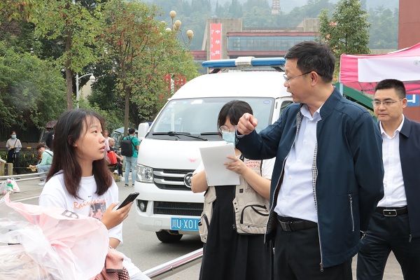【本网讯】9月15日下午学校党委书记吴昊,党委副书记、校长向武,党委副书记、工会主席孙建平,副校长毛英等学校领导深入学校迎新现场指导工作。宣传统战部、校团委、学工部等部门负责人陪同检查。