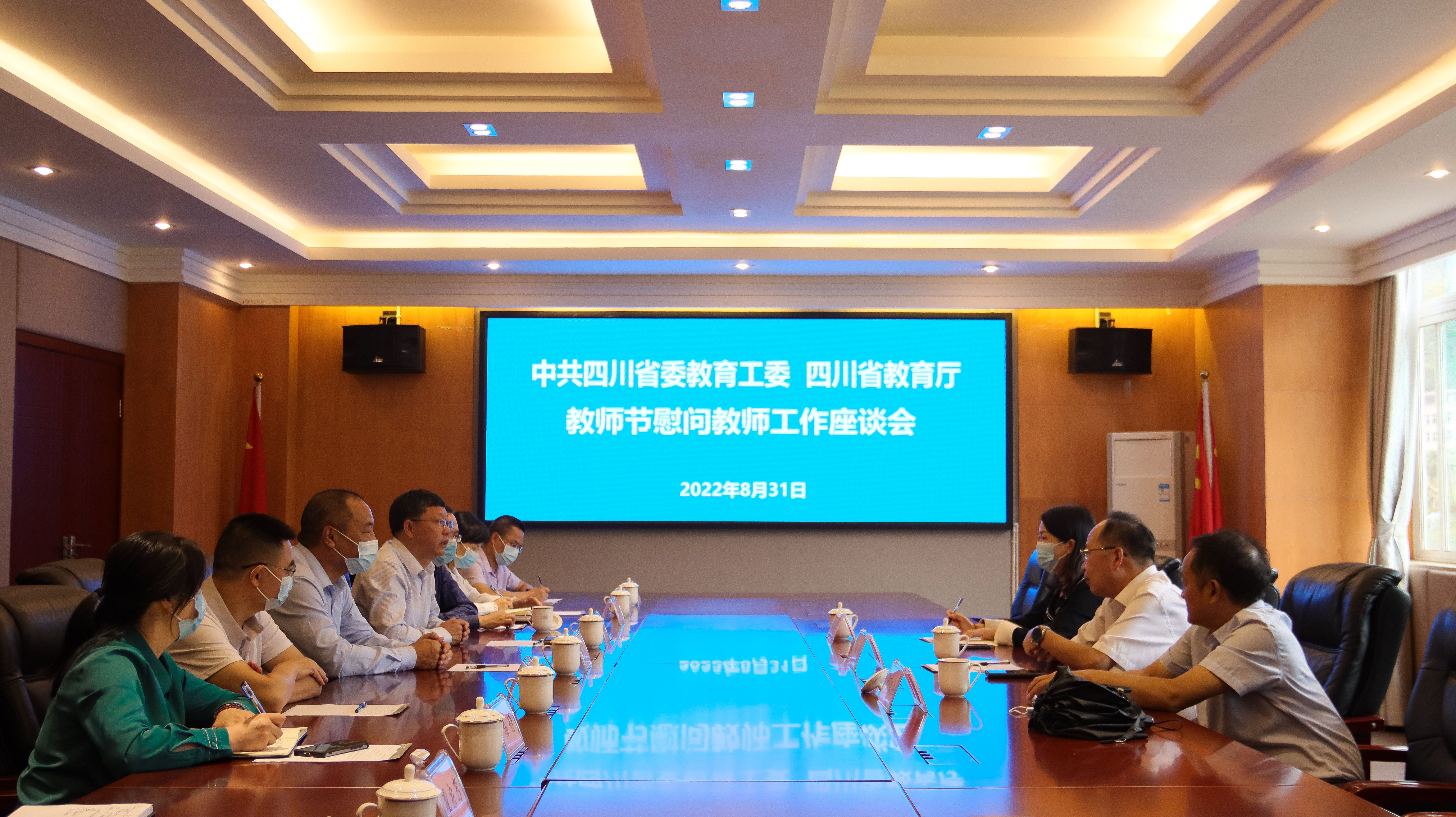 【本网讯】在第38个教师节即将到来之际,为体现党和政府对教育工作的高度重视和对教师的亲切关怀,坚定我校通过本科教学合格评估的信心,8月31日10:00,根据省委教育工委、教育厅统一安排,中共四川省委教育工委委员、省政府教育督导委员会专职副主任傅明,省教育厅民族教育处处长胡银安,省教育厅教育督导与审计处处长王运芳一行,在中共阿坝州委教育工委书记、州教育局党委书记、局长蔡鹏飞,州教育局基础教育与民族教育科科长翟宗秀的陪同下,专程赴我校走访慰问教师代表,并就合格评估、疫情防控、新学期入学返校等重点工作开展座谈调研。汶川县政府副县长杨静、县教育局局长殷莉,我校党委书记吴昊,党委副书记、校长向武,副校长毛英参加座谈会。会议由向武在行政楼406会议室主持。