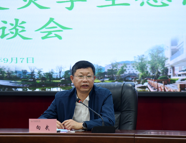 最后,校长向武鼓励受灾学生并提出五点希望,一是希望同学们能正确认识、面对自然灾害,进一步坚定战胜地震的信心,相信在党和政府的坚强领导下,一定能够夺取抗震救灾的胜利;二是希望同学们要与家人经常联系,关心父母、关爱家人,鼓励灾区亲人以乐观向上的心态面对困难、战胜困难;三是希望各二级学院党委(党总支)书记要主动关心受灾学生,传递党和政府、学校和老师对他们的关心、关爱;四是希望受灾同学在今后的学习和生活中遇到任何困难要及时提出,寻求辅导员、班主任以及各学院党委(党总支)书记的帮助;五是希望同学们能够战胜自己、帮助父母、认真学习,把学校当作温暖的家,努力提升自己,回报社会。在中秋佳节到来之际,校长向武向全体地震受灾学生表示最诚挚的慰问,希望全体学生学业进步、身体健康、节日快乐。