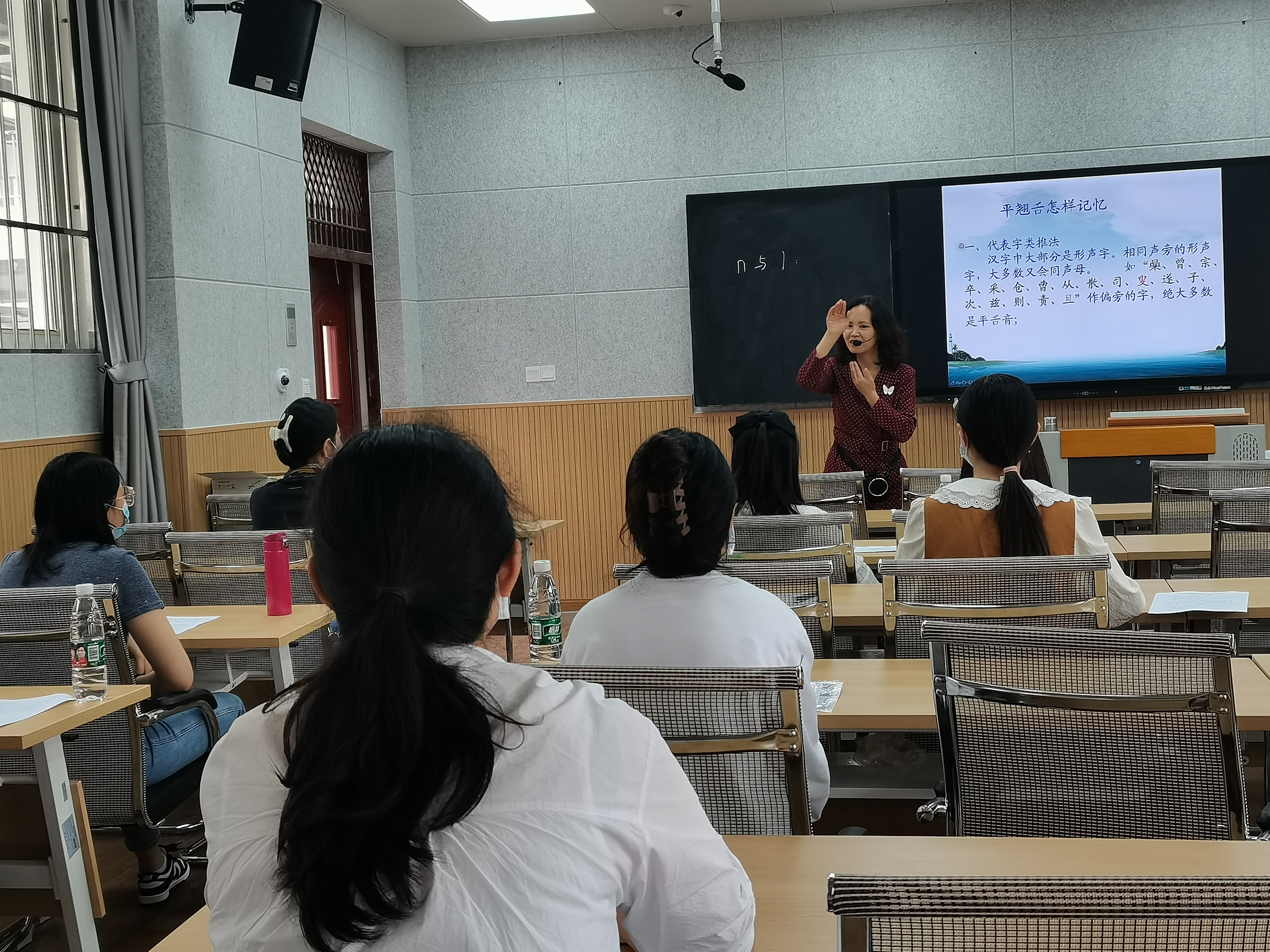 紧接着,郭三黎老师为讲解员进行了普通话发音培训。她针对普通话发音中易受到四川方言影响的读音进行了重点讲解,辨析易错读字词、讲授朗读中的停连、轻重音等发音技巧。李端老师详细讲授讲解员工作中的观众迎送、陪同引导、展厅接待和送别等各方面礼仪,进一步增强了讲解员对礼仪知识和技能的全面把握。