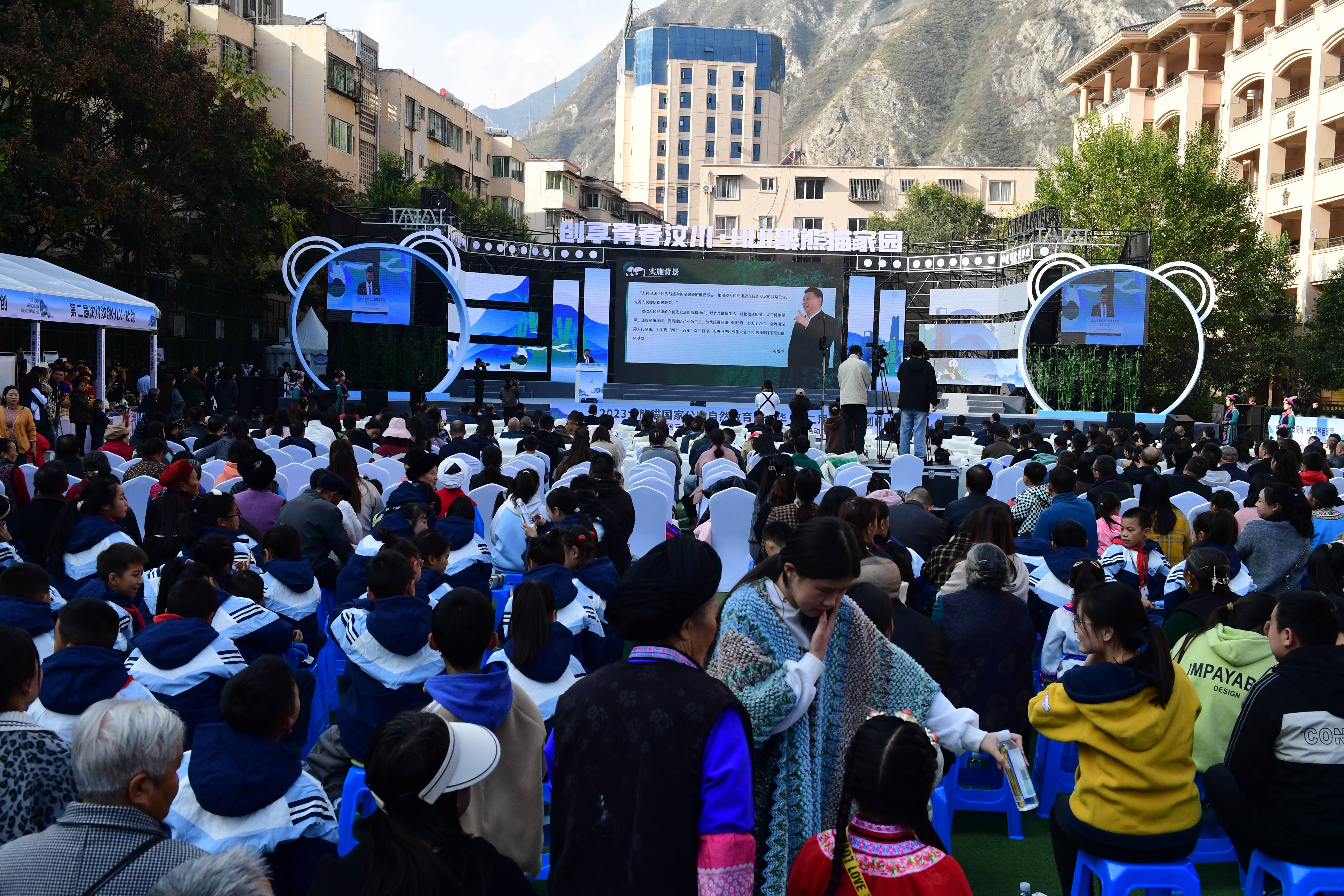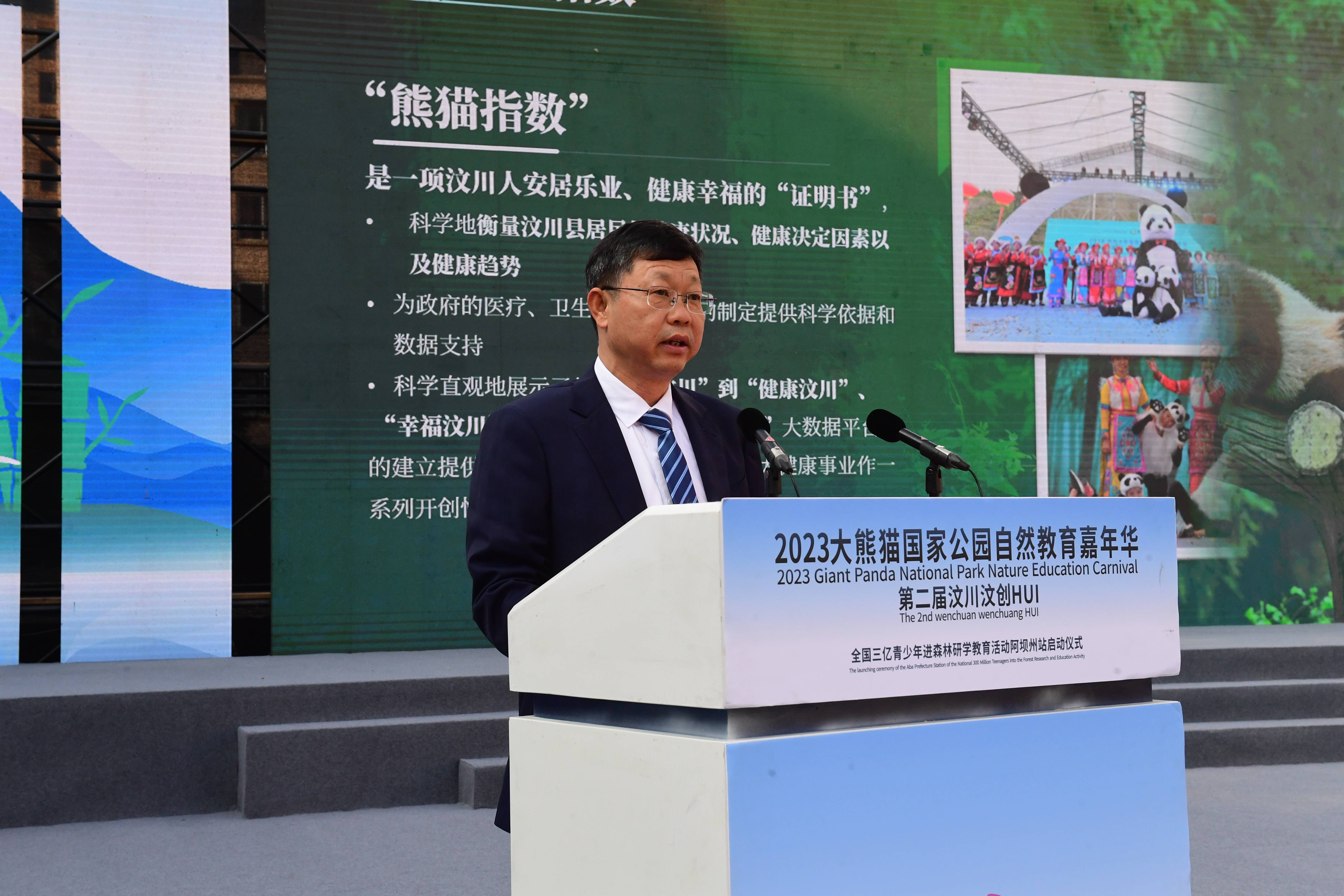 大熊猫国家公园自然教育嘉年华•第二届汶川汶创HUI开幕式于2023年11月11日在汶川县第一小学举行,来自国际国内的多位专家、学者以及省内外各单位领导、嘉宾和当地群众参加了开幕式。汶川县熊猫指数研究(2021-2025)团队的研究成果——“2022年度汶川县熊猫指数”隆重发布,阿坝师范学院党委副书记、校长向武教授,项目组成员杨仕椿、向昌成、蒋自国、罗平、陈波、刘汉文等参加发布会。