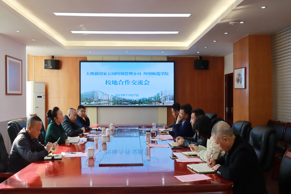 向武对大熊猫国家公园阿坝管理分局给予学校的支持表示衷心感谢。他指出,学校致力于把生态保护和乡村振兴相结合,积极推动非遗文化、自然资源保护和传承。他强调,要加强科普教育和自然教育;要加强队伍建设,完善学历结构;要加强文化研究,提高文化自信。结合学校教学、科研、人才队伍等建设开展校地合作,实现互利共赢,共同推动具有阿坝特色的大熊猫国家公园建设。座谈会上,双方就国家公园规划与管理、生态环境保护、社区参与、自然教育等相关事宜达成共识。