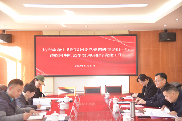 【本网讯】为深入贯彻落实新时代党的建设总要求,全力推进基层党建提质增效。州基层组织治理指导中心主任郭子琦带领阿坝州委党建调研督导组一行于11月27日到我校开展党建督导调研。我校党委副书记毛英,党委常委、组织部部长刘伟,机关党委书记、党建办主任、组织部副部长唐刚,组织部组织科副科长左晓慧参与调研。