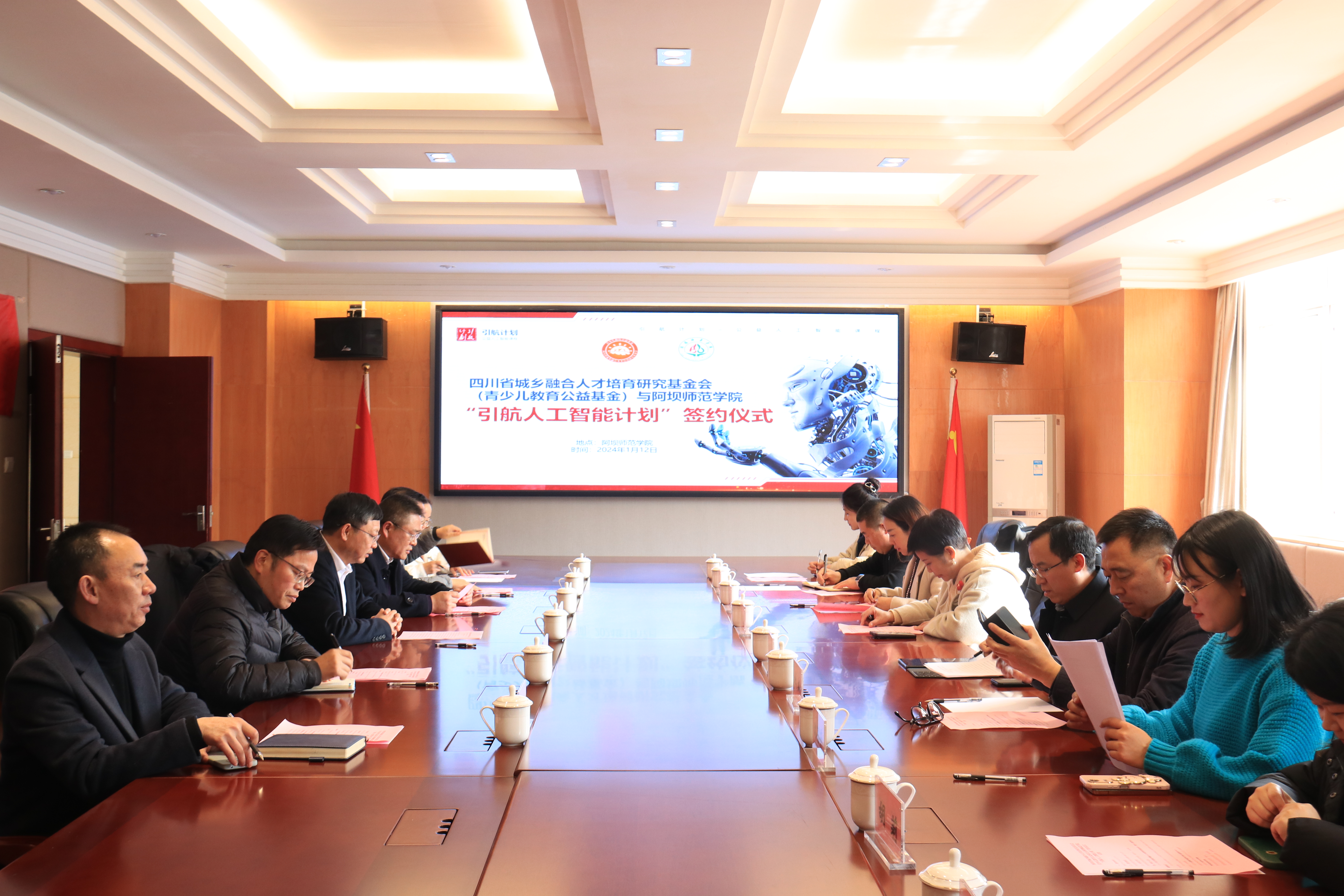 【本网讯】1月12日下午,我校与四川省城乡融合人才培育研究基金会青少儿教育公益基金在行政楼406会议室顺利举行签约仪式。四川省城乡融合人才培育研究基金会副理事长兼执行秘书长金芸帆、青少儿教育公益基金执行部长王悦语,成都市诚学长青公益服务中心主任沈德芳,阿坝电信总经理蒲川;我校党委副书记、校长向武,党委常委、副校长马昌威出席仪式。签约仪式由马昌威主持。