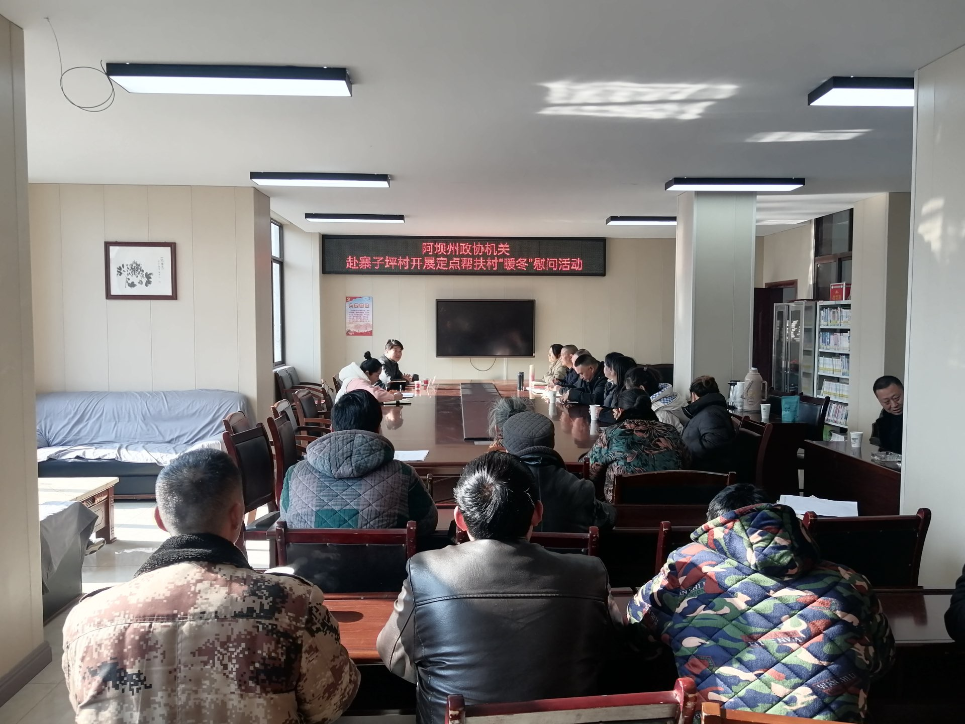 【本网讯】为进一步密切党群干部关系,近距离传递冬日温暖。1月26日,我校驻村干部付文灿一行赴帮扶单位汶川县水磨镇寨子坪村开展“暖冬”慰问活动,参加活动的还有寨子坪村全体村干部及党员同志。活动由阿坝州政协机关党委书记刘显波主持。