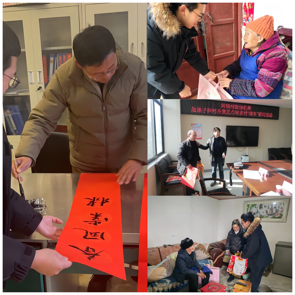活动现场,驻村干部与村民“面对面”接触,“心连心”交流,详细询问其身体状况和生活诉求,鼓励他们努力战胜困难,积极面对生活,并提前祝愿他们欢度愉快祥和的新春佳节,让广大村民真切感受到党组织的关心与关怀。活动特邀阿坝州书法家协会副秘书长、汶川县书法家协会副主席,我校教师教育学院教师王程教授亲临现场,他以饱满的热情和精湛的技艺,挥毫泼墨,为村民书写寓意吉祥的对联,祈愿新的一年家庭幸福、事业顺利,这是中国传统文化的魅力,更是驻村干部对村民关心关爱的集中体现。