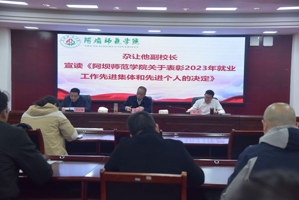 会议伊始,尕让他宣读《阿坝师范学院关于表彰2023年就业先进集体和先进个人的决定》,并对2023年毕业生就业工作先进集体和先进个人进行颁奖。尕让他通报全校2024届毕业生就业工作进展的情况。尕让他指出,目前我校毕业生的就业形势严峻,与兄弟院校相比存在较大差距,必须引起高度重视。他指出,我校要根据专业特点,打造资源平台,用好线上线下就业资源,积极推进毕业生就业工作的开展。各二级学院院长和书记要进一步增强对就业工作重要性认识,增强做好就业服务意识,严格审查毕业生的就业情况,加强就业帮扶工作,将困难毕业生情况掌握到位、就业帮扶举措落实到位。