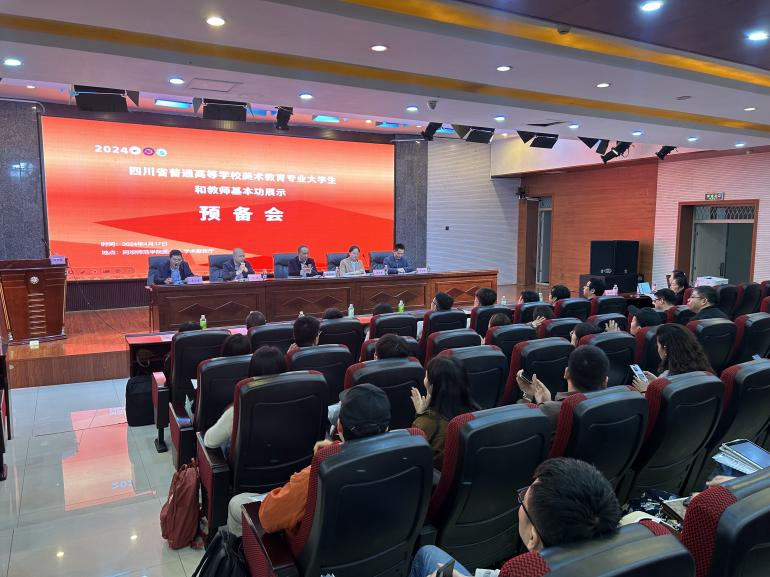 【本网讯】2024年4月17日下午,由四川省教育厅主办,阿坝师范学院承办的2024年四川省普通高等学校美术教育专业大学生和教师基本功展示预备会在我校学术报告厅顺利举行。来自省内29所高校领队41人参加了此次预备会。四川省教育厅体卫艺处陈佩君,成都东软学院罗频捷;我校党委常委、副校长齐泽民,美术学院院长黄洋出席会议。会议由美术学院党委副书记(主持工作)马小勇主持。
