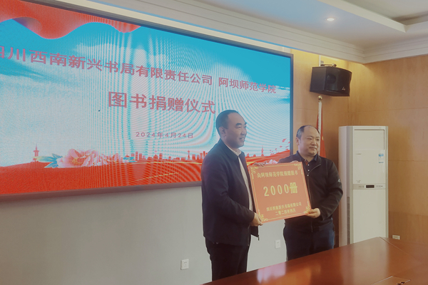 【本网讯】4月24日10:00,我校与四川西南新兴书局有限公司于行政楼406会议室举行图书捐赠仪式。四川西南新兴书局有限公司董事长任向宏、总经理任万凯一行到我校进行图书捐赠活动,我校党委副书记、院长向武,党委常委、副院长齐泽民,党委常委、副院长尕让他,对外合作处、图书馆、教务处主要负责人参加捐赠仪式。仪式由尕让他主持。