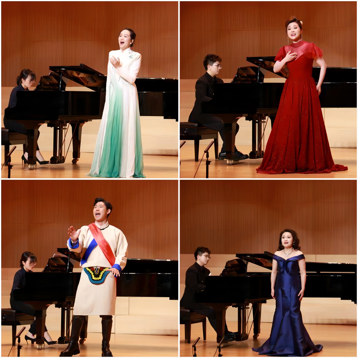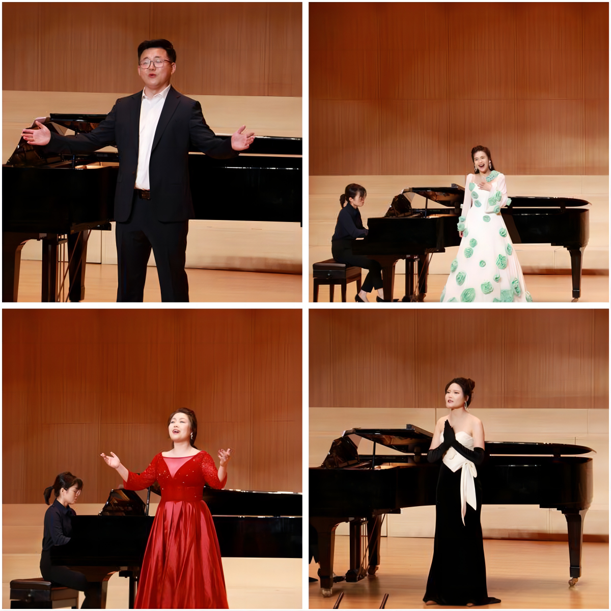 青年教师武佳伟用雄浑而饱含情感的嗓音演唱《父亲的草原母亲的河》拉开了音乐会序幕,缓缓动人的歌声中流露出深厚的思乡之情,打动着每一位听众,赢得了台下阵阵掌声;曹术熙《阿里朗组曲》节奏有快有慢,曲调有急有缓,钢琴、鼓手与歌手间的配合十分默契,带来了一场视听盛宴,台下欢呼不断;黄凰《青春舞曲》新疆民歌,节奏欢快,活力四射,青春之感让人忍不住想随歌而舞;宋凯、武佳伟、王饼、罗啸等合作《草原上升起不落的太阳》用悠远绵长的曲调将人带入一片草原旷野,头顶红红的太阳散发着无限红光;全体教师《上春山》曲调轻松明快,歌词尽显春色美意,邀约大家共赏春景,共赴音乐会,为本次音乐会画上了圆满句号。