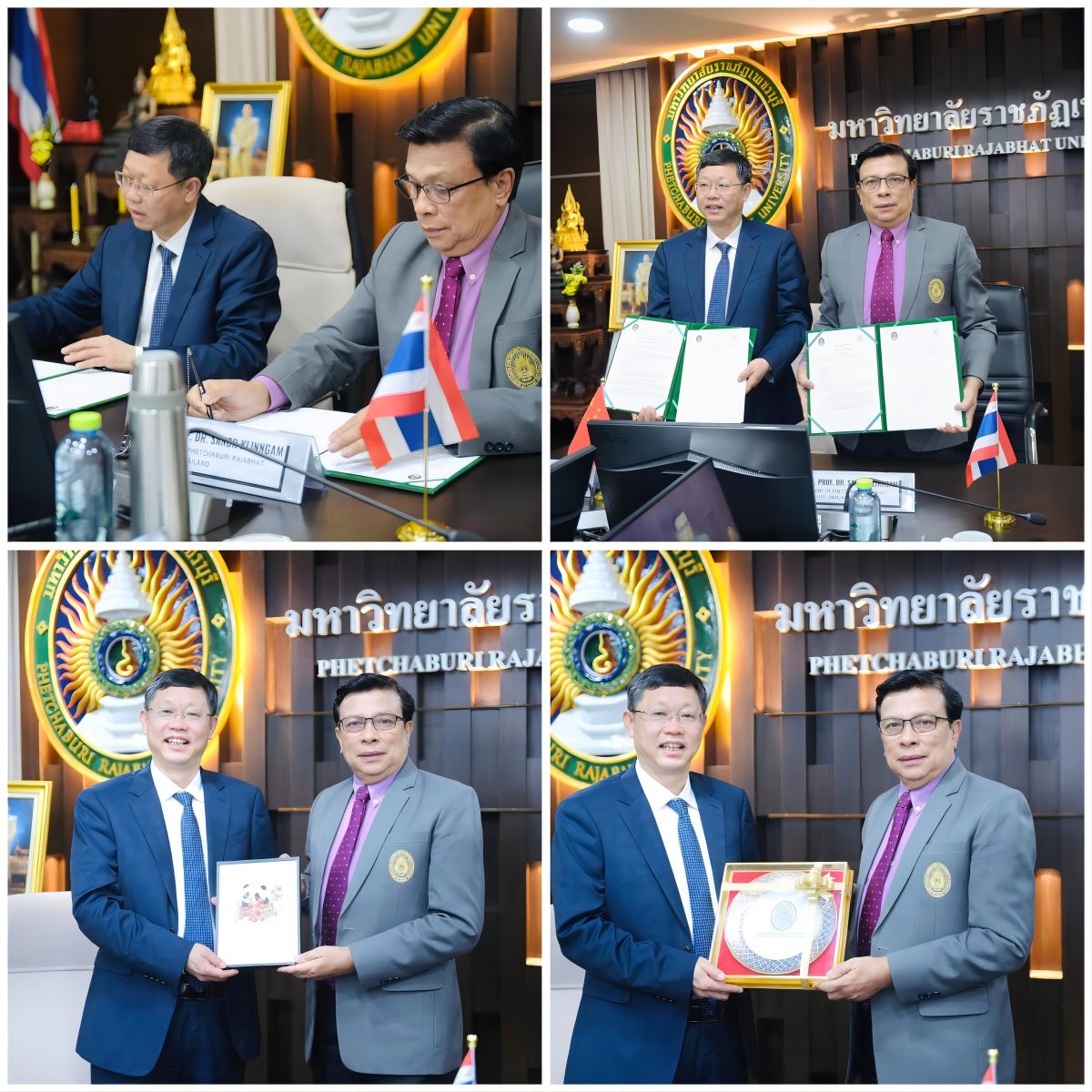 会上,双方领导签署《中国·阿坝师范学院与泰国·碧武里皇家师范大学合作谅解备忘录》,并互赠礼物。