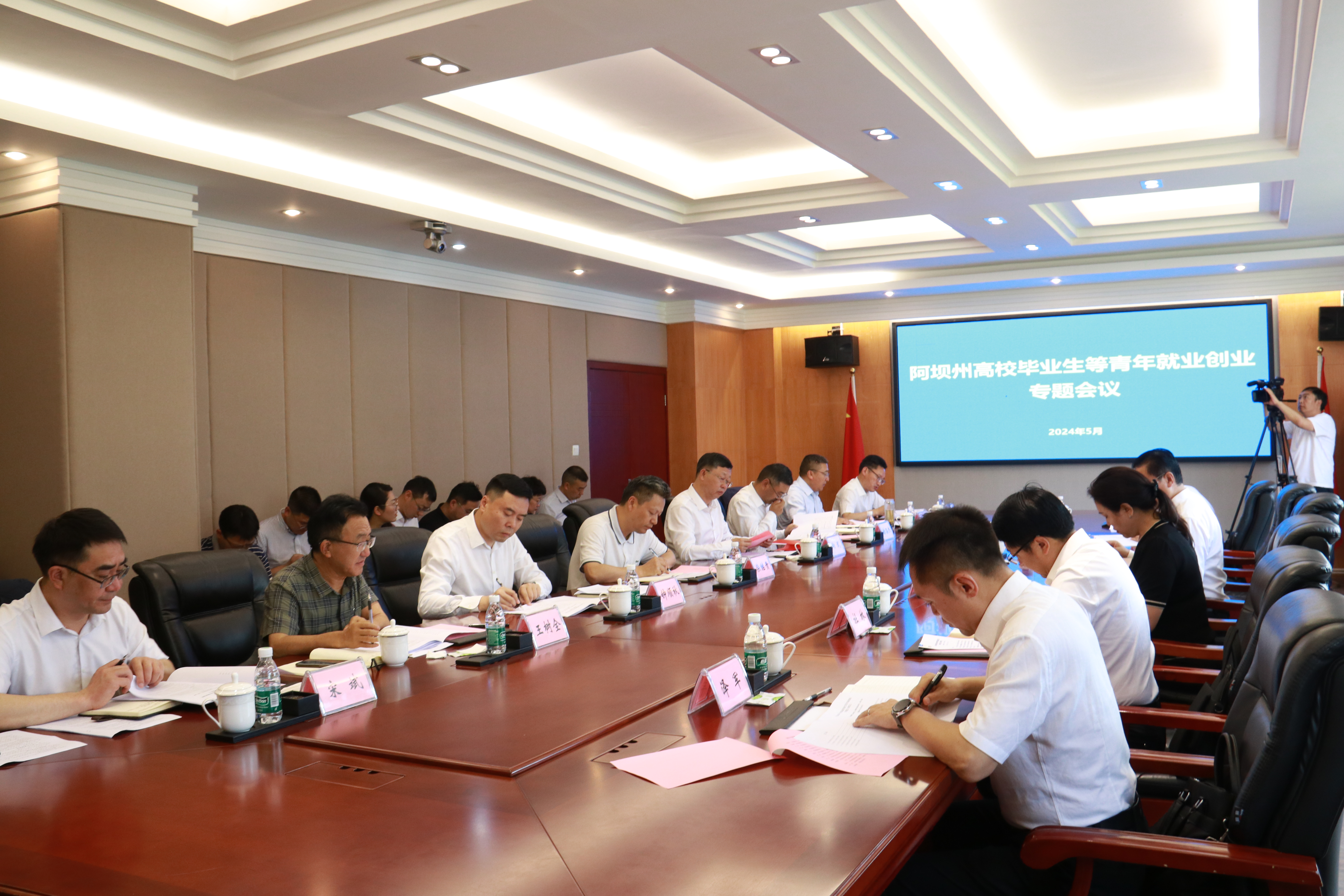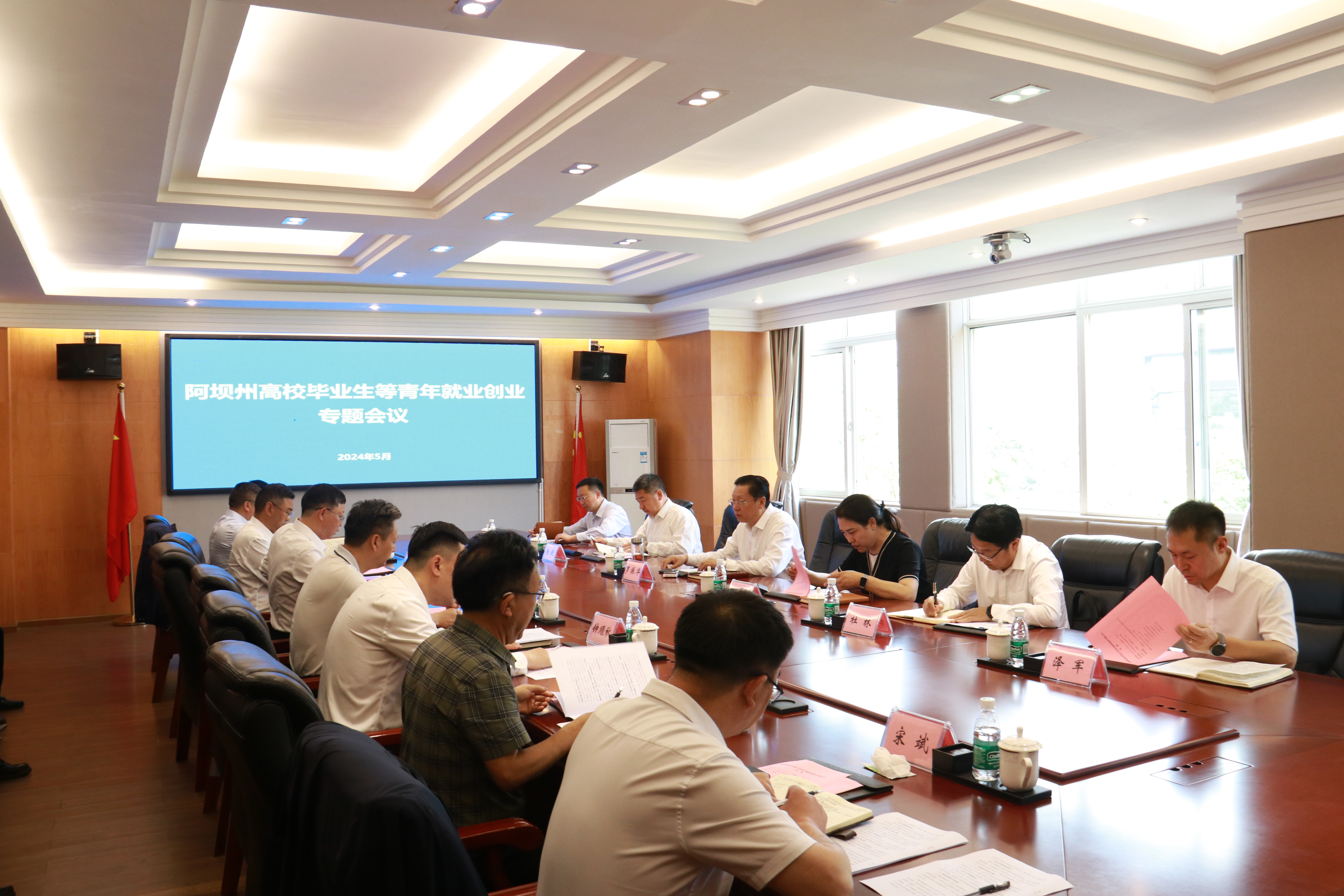 【本网讯】为深入学习贯彻习近平新时代中国特色社会主义思想和党的二十大精神,全面落实党中央国务院、省委省政府、州委州政府对高校毕业生等青年就业创业工作的决策部署,5月24日9:00,2024年阿坝州高校毕业生等青年就业创业专题会在我校行政楼406会议室召开。州委副书记、州长罗振华,副州长依当措,副州长朱锐,秘书长杜林,副秘书长段建波,副秘书长泽军,汶川县政府、州教育局、州人社局、州就业局主要负责人,阿坝师范学院、阿坝职业学院、阿坝州中等职业技术学校、四川省威州民族师范学校主要负责人参加此次会议。罗振华主持会议。