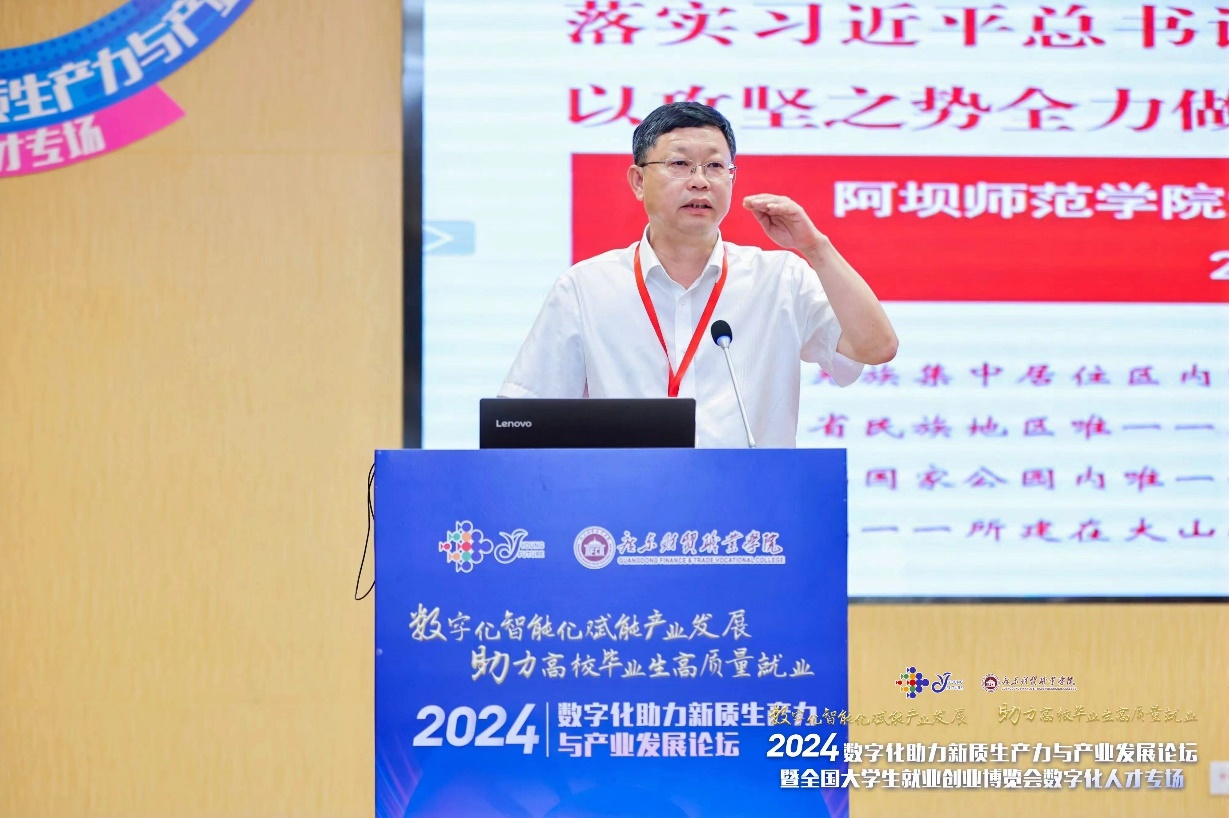【本网讯】为深入学习贯彻习近平新时代中国特色社会主义思想和党的二十大精神,落实贯彻《“十四五”就业促进规划》《加快数字人才培育支撑数字经济发展行动方案(2024—2026年)》等文件要求,打造“产学研用”数字化融合生态圈,共促毕业生高质量充分就业,5.31-6月2日高校毕业生就业协会数字产业与就业工作委员会在广东清远市召开2024年数字化助力新质生产力与产业发展论坛暨全国大学生就业创业博览会数字化人才专场。本次大会汇聚了全国60余所本专科院校和130余家企业单位的行业专家,共同探讨数字化时代背景下的新质生产力和产业发展的重要议题。党委副书记、校长向武应邀出席论坛并作《落实习近平总书记来川视察重要指示精神以攻坚之势全力做好毕业生高质量充分就业》的主旨报告。