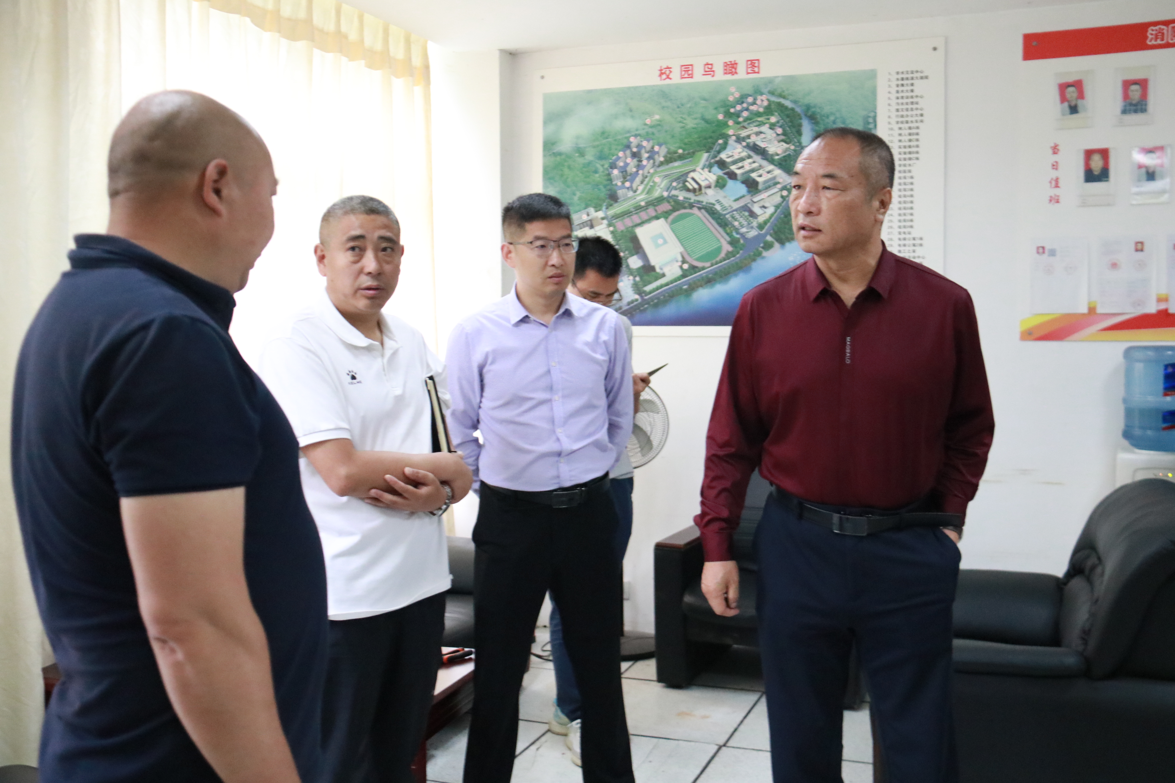吴昊一行来到学校消防控制室,详细询问了控制室设置是否符合消防技术标准要求,是否有明显标志;消防控制室的控制设备是否齐全,是否完好有效;消防控制室值班操作人员是否熟悉消防控制设备功能,是否熟悉应急操作程序,值班记录和巡查记录是否规范等。