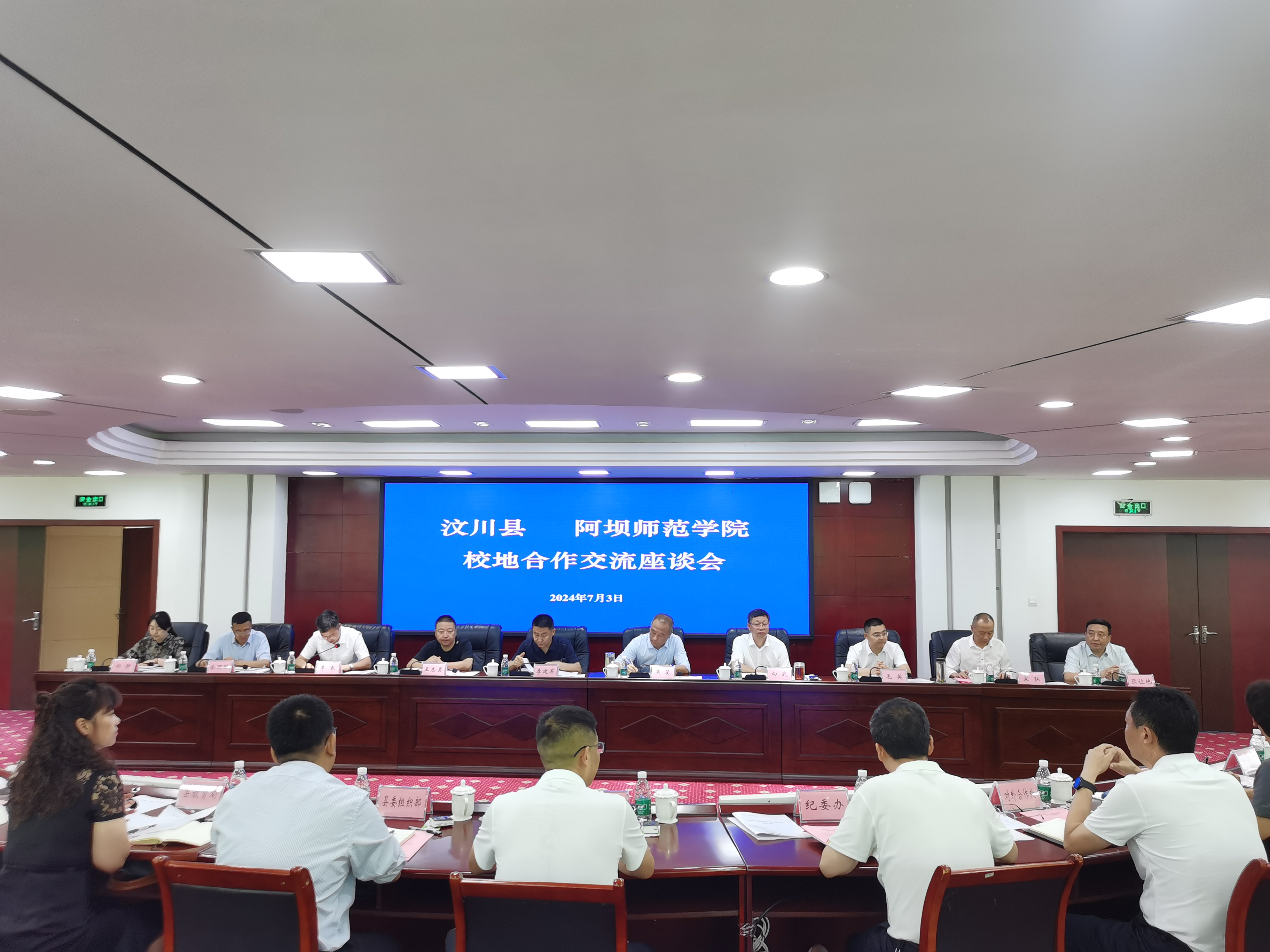 【本网讯】2024年7月3日15:00,我校于行政楼二楼会议室与汶川县召开校地合作交流座谈会。阿坝州委常委、汶川县委书记李建军,汶川县政协主席王志勇,县委副书记、映秀镇党委书记李春,县委常委、宣传部部长余理胜,副县长杨静,汶川县各相关部门以及企业负责人;我校党委书记吴昊,党委副书记、校长向武,党委副书记毛英,党委常委、副校长、工会主席宋弘,党委常委、副校长尕让他以及各职能部门负责人参加座谈会。