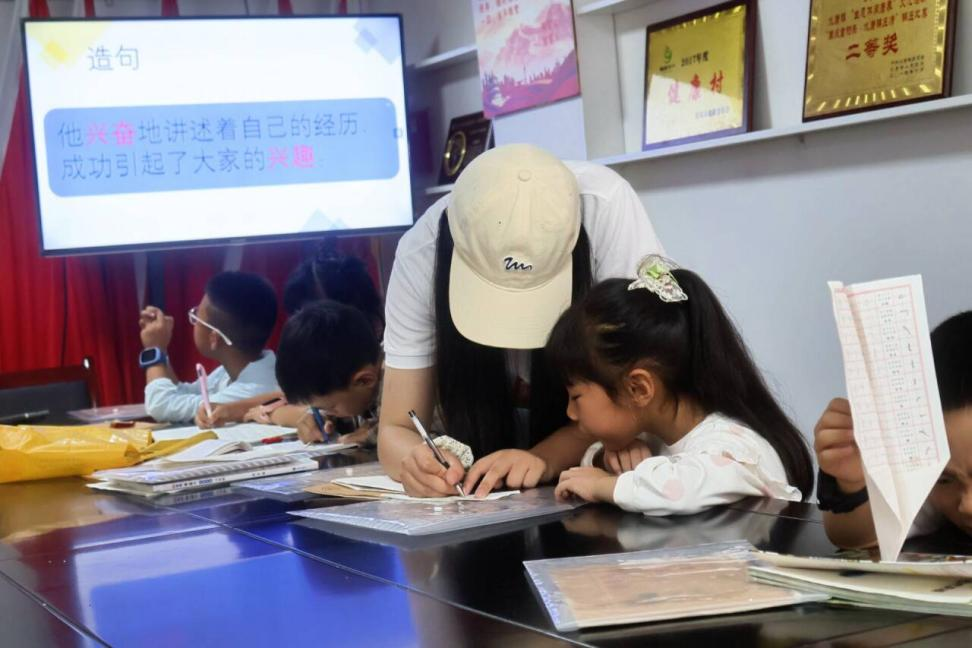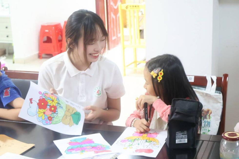 14:30,该团队带领学生开展绘画教学,旨在提高学生审美鉴赏能力。他们充分展开想象的翅膀,积极探索求知,为不同的图案赋予各异的色彩,全身心地沉浸于美术创作之中,尽显单纯与童真。该团队还化身一对一“家教”,辅导学生复习当天所学内容,完成课程作业,帮助其查漏补缺、探索新知、巩固教学效果。