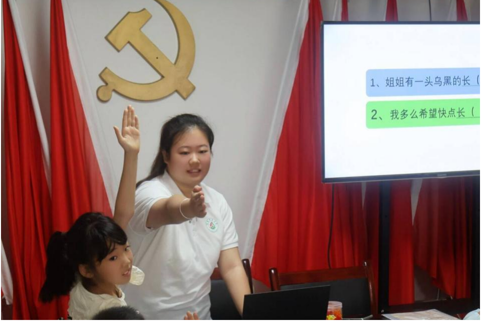 上午9:30,团队成员坚持学校师范底色,发挥专业优势为当地小学生带来一场生动的普通话教学课程,根据学生个体差异,团队采取因材施教的策略,针对不同学情的学生采取适宜的教学方式。针对低年龄段学生,采用常见多音字教学,让学生深刻体会多音字字音、字义之间的区别,并运用造句、做题的方式巩固所学知识。对于高年龄段学生,采用小组辅导的形式展开教学,有针对性地教授知识并答疑解惑。