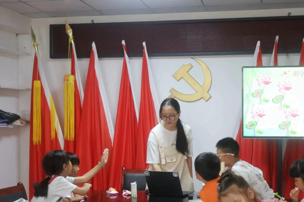 “党旗映彝乡,普语振新村”推普团分为青壮年教学组与学龄期儿童教学组,针对性对喜得县彝欣社区居民开展推普教学活动。针对成年人,团队通过生动有趣的情境对话,直观展现普通话交流的全过程,极大激发他们的学习兴趣。针对儿童,将歌曲与朗读相结合,根据年龄与能力差异,灵活采取集中教学与一对一辅导相结合的方式进行教学,营造出充满趣味的课堂氛围。