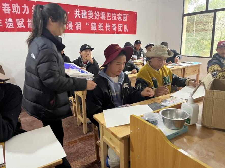 为丰富壤塘县学生的课余生活,提高他们的艺术素养和创新能力,“非遗赋能·美育浸润”藏纸传奇团队组织了普通话和绘画技能的教学以及非遗文化的宣传等活动。通过团队专业的指导和互动实践,激发了当地学生的艺术兴趣,同时进一步培养了他们的绘画技能,在铸牢中华民族共同体意识中促进民族文化融合。