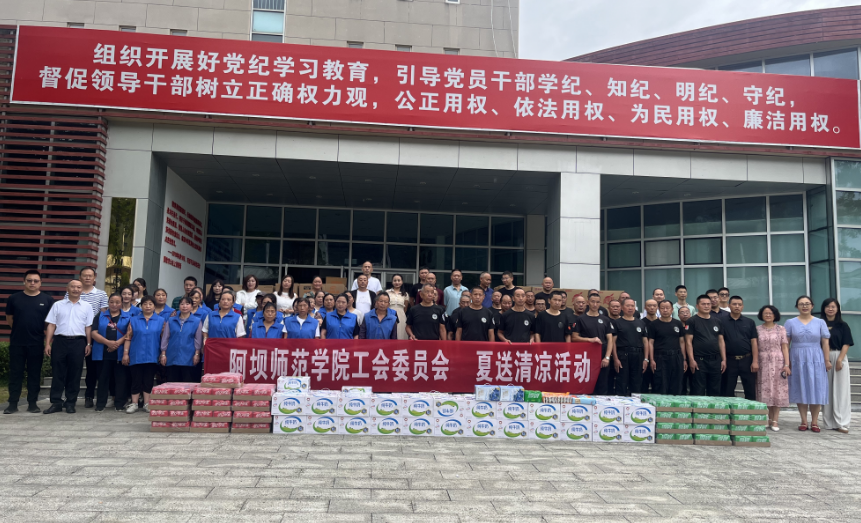 【本网讯】2024年7月29日,阿坝师范学院党委常委、副校长、工会主席宋弘带队开展“盛夏送清凉 关心润心田”2024年“夏送清凉”慰问活动,为在高温酷暑天气仍坚守岗位的教职工送去了关怀和慰问。学校党委常委、宣传统战部部长查旺斯基,党政办公室主任赵勇军,学校工会常务副主席江先蓉,工会办公室主任何永春参加慰问活动。