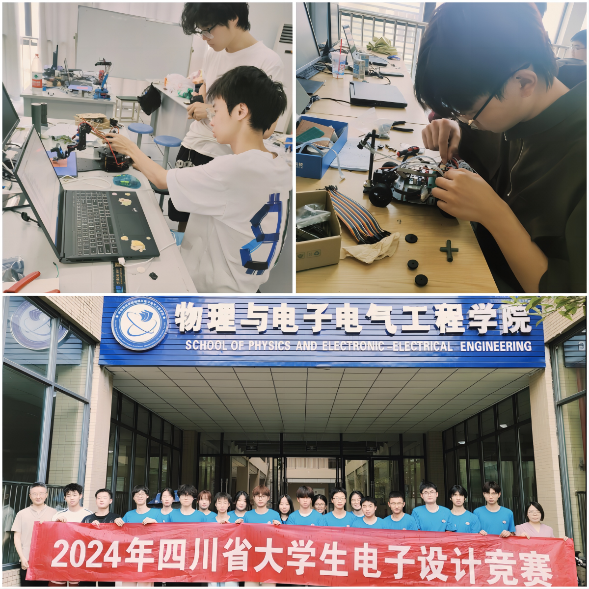 2024年四川省大学生电子设计竞赛于7月29日8时准时开赛。我校12支参赛队在第一阶段4天3夜限时封闭竞赛中,完成赛题选择与分析、方案设计与论证、作品设计与制作、功能调试与测试、设计报告撰写等各项工作,展现出参赛学生较强的分析解决问题能力、动手实践能力和团队分工合作能力。经过第一阶段,有11支队伍提交了设计作品,进入第二阶段竞赛的测试环节,在指导老师的带领下,到电子科技大学参加作品现场测评,同学们在测试专家面前沉着冷静地展示作品的工作性能和运行效果,获得作品评分后参与评奖。
