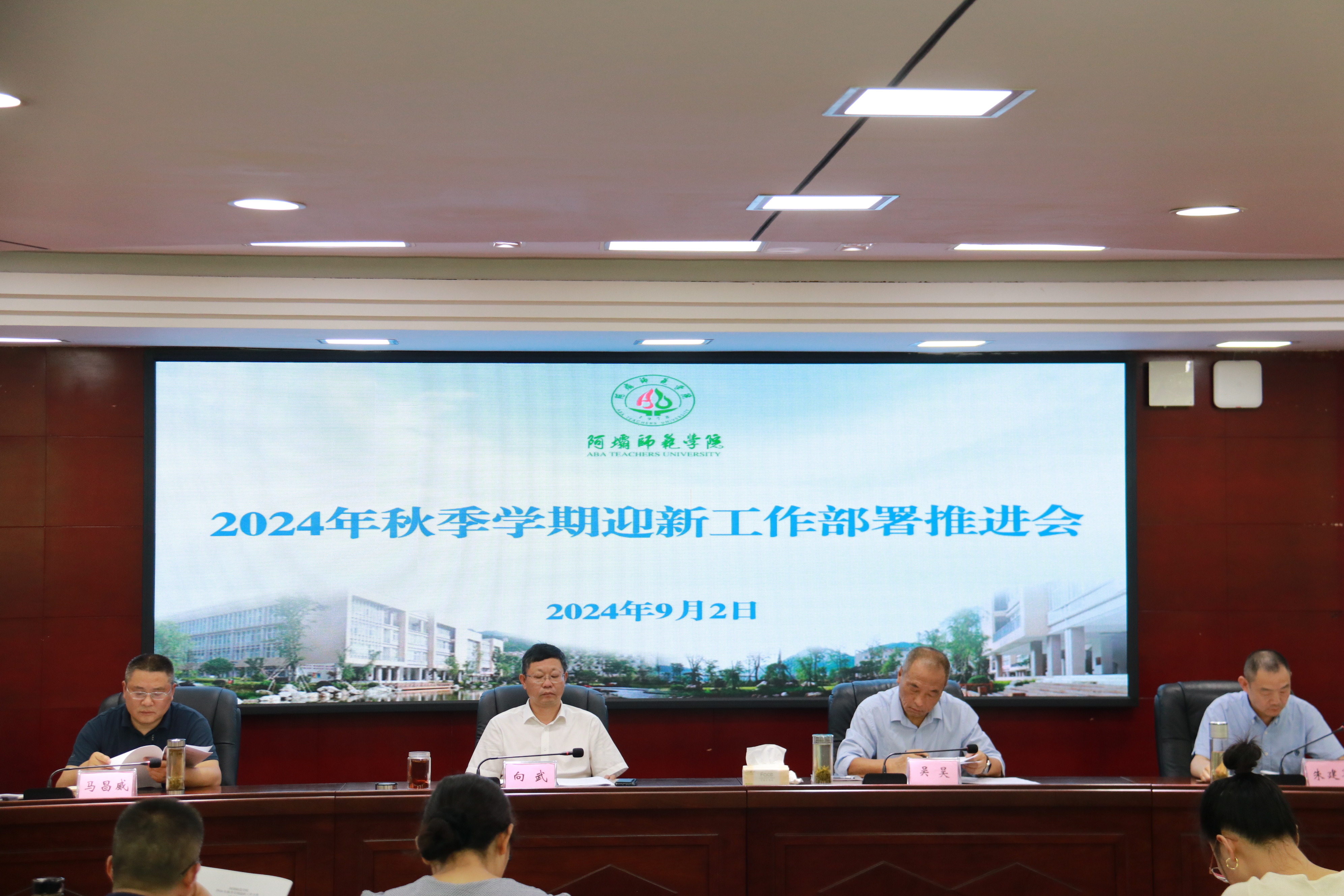 【本网讯】金秋九月,喜迎新生。随着新学期的临近,为确保2024级新生能够顺利、愉快地开启大学校园生活。我校于9月2日14:30在行政楼2楼会议室召开迎新工作部署推进会。学校党委书记吴昊,党委副书记、校长向武,省纪委监委驻校纪检监察组组长、党委副书记、纪委书记朱建军,党委常委、副校长马昌威,党政办公室、宣传统战部、学生工作部等职能部门主要负责人,各二级学院党委书记(副书记)、学管办主任及2024级新生全体辅导员参加会议。此次会议由朱建军主持。