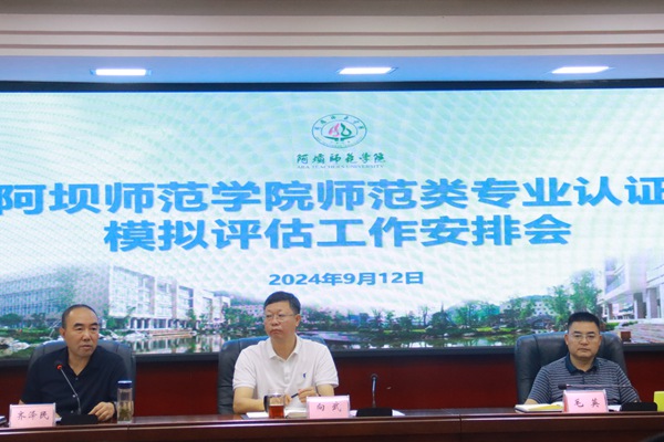 【本网讯】为切实做好我校师范类专业认证模拟评估工作,我校于2024年9月12日16:00在行政楼二楼会议室召开师范类专业认证模拟评估工作安排会。党委副书记、校长向武,党委副书记毛英,党委常委、副校长齐泽民,各职能部门和二级学院负责人参加会议。会议由齐泽民主持。