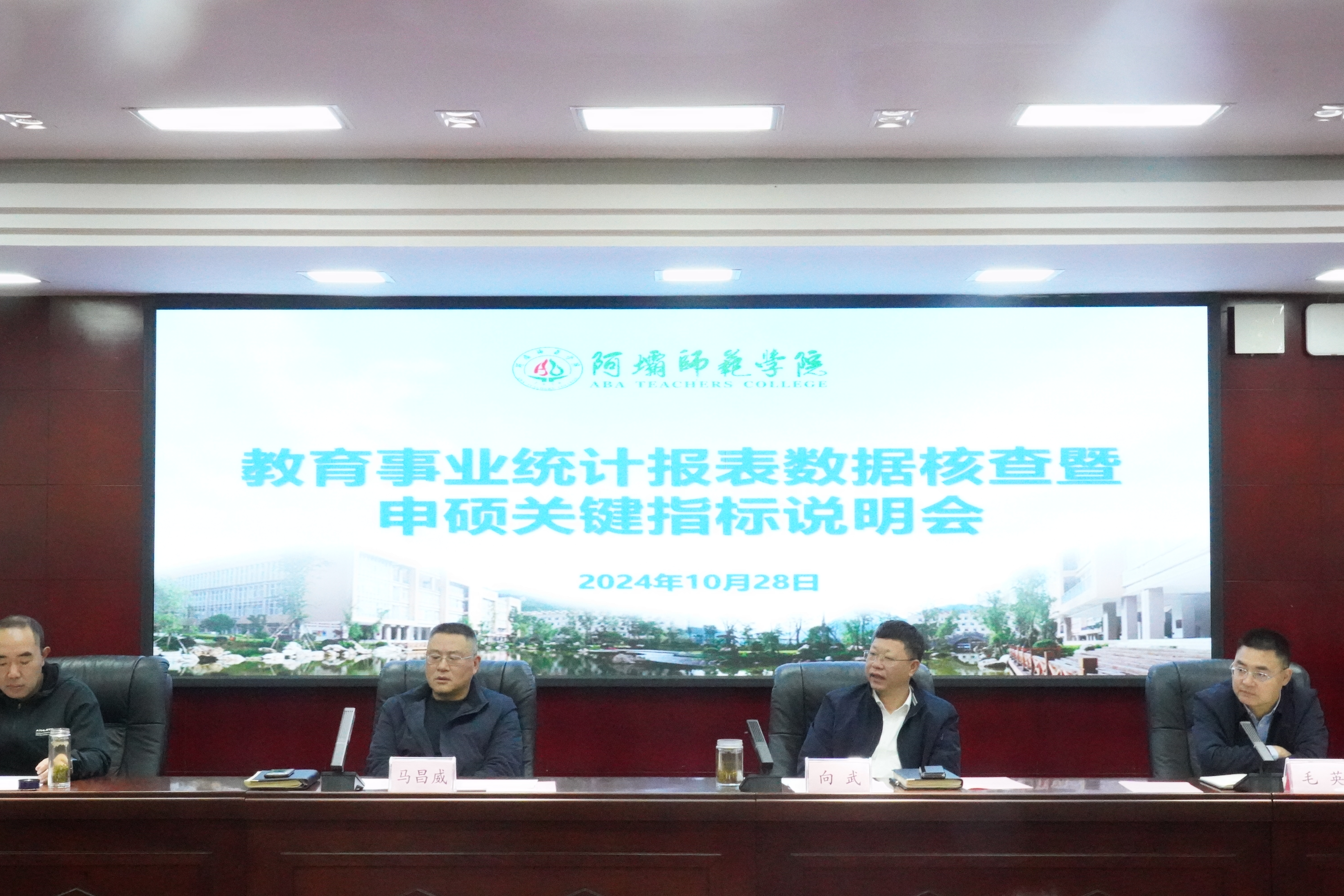 【本网讯】为严格审核教育事业统计报表数据,持续推进学校申硕工作,2024年10月28日上午9:00在行政楼二楼会议室召开教育事业统计报表数据核查暨申硕关键指标说明会。学校党委副书记、校长向武,党委副书记毛英,党委常委、副校长马昌威,党委常委、副校长、工会主席宋弘,党委常委、副校长齐泽民及相关职能部门参加本次会议。本次会议由毛英主持。