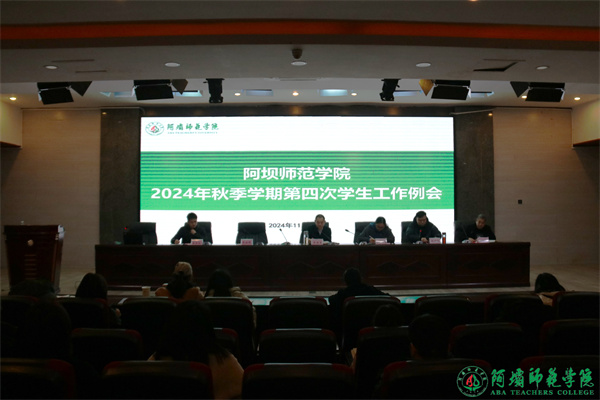 【本网讯】为进一步谋划部署学生工作,我校于11月26日14:30在学术报告厅召开2024年秋季学期第四次学生工作例会。省纪委监委驻阿坝师范学院纪检监察组组长、党委副书记、纪委书记朱建军,相关职能部门负责人及二级学院党委书记、副书记、学生管理办公室主任参加会议。本次会议由党委学生工作部部长钟顺秋主持。