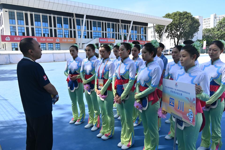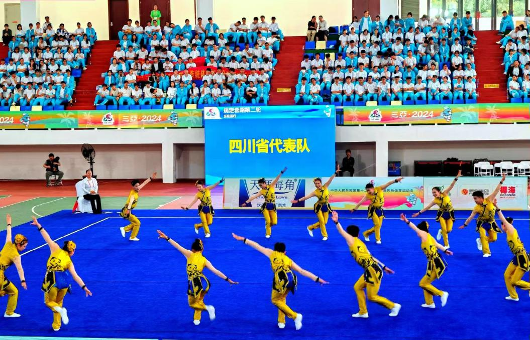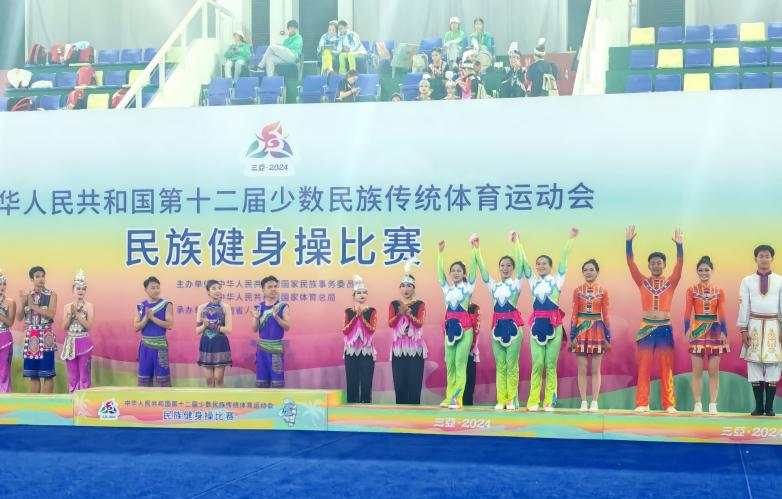 【本网讯】2024年11月28日下午,全国第十二届少数民族传统体育运动会民族健身操比赛项目在海南省三亚市圆满结束。本次运动会共有31个省市代表队参赛,我校代表四川首次组队参加此次大赛。由学校党委常委、副校长、体育运动委员会主任齐泽民担任领队,体育与健康学院周彦宏副教授担任教练的四川省民族健身操代表队在比赛中分别取得了民族健身操项目自选套路(徒手)三等奖、团体总成绩三等奖的优异成绩。