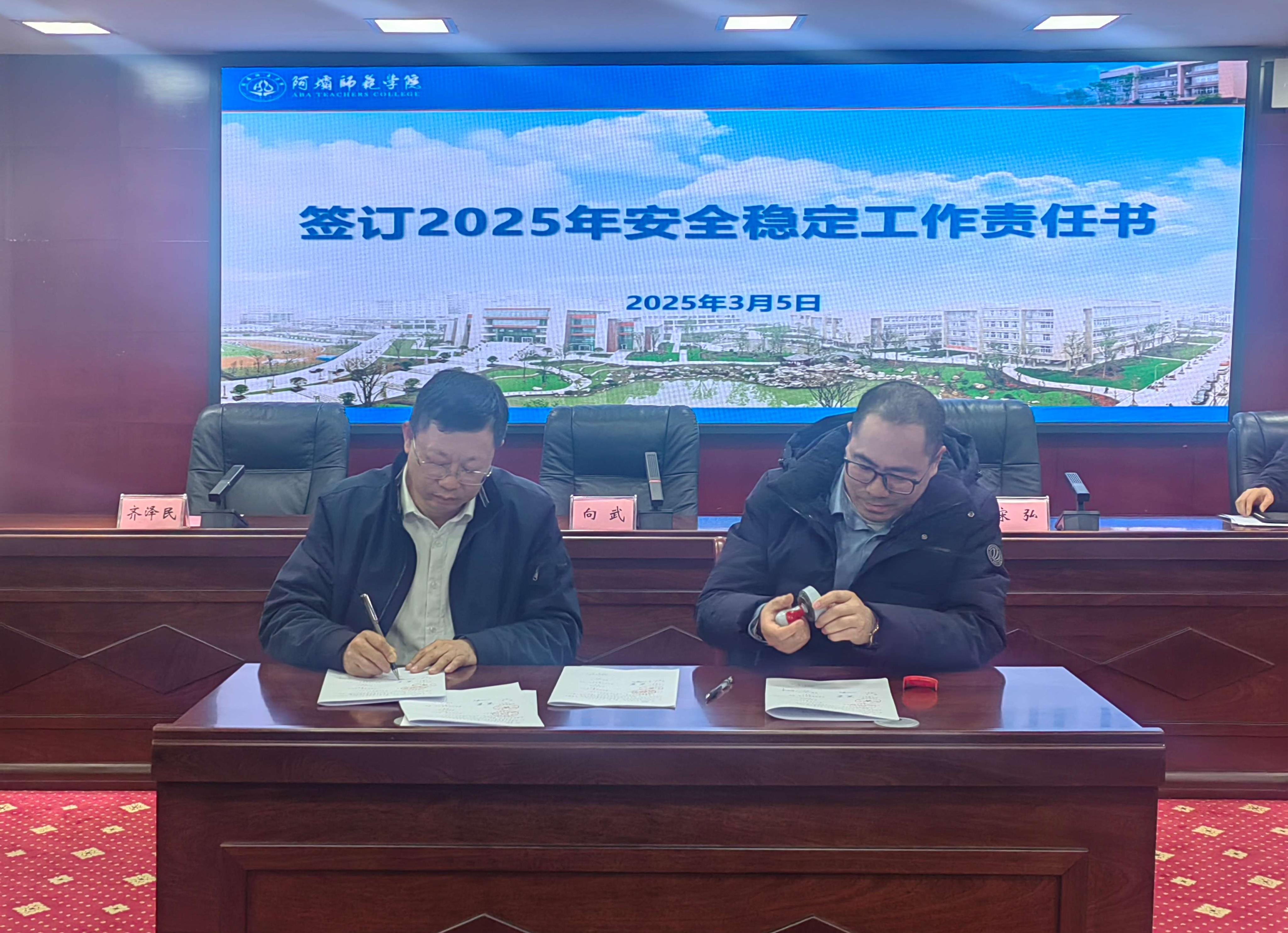 会上,党委保卫部·保卫处副处长母春生就2024年的安全稳定工作作了汇报,对2025年度安全稳定工作要点作了详细说明,各二级单位现场签署了安全稳定工作责任书。
