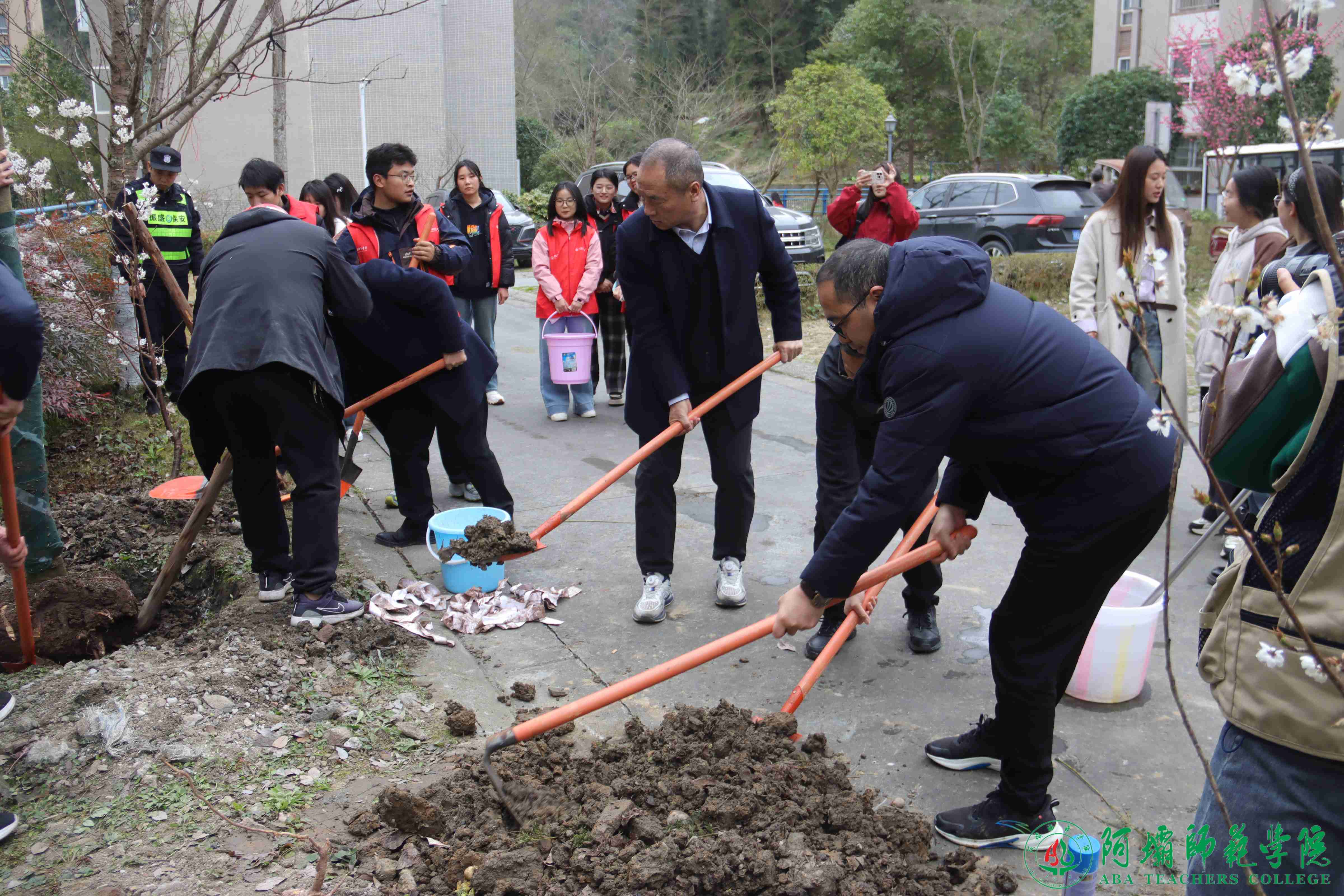 【本网讯】春回大地万物苏,植树添绿正当时。增绿就是增优势、植树就是植未来,为校园环境增添一抹新绿,适逢我国第47个植树节来临,我校于3月12日开展了全民义务植树活动。学校党委书记吴昊,党委常委、副校长马昌威,党委常委、副校长、工会主席宋弘,党委常委、副校长刘伟出席活动,与师生一道参与植树活动。