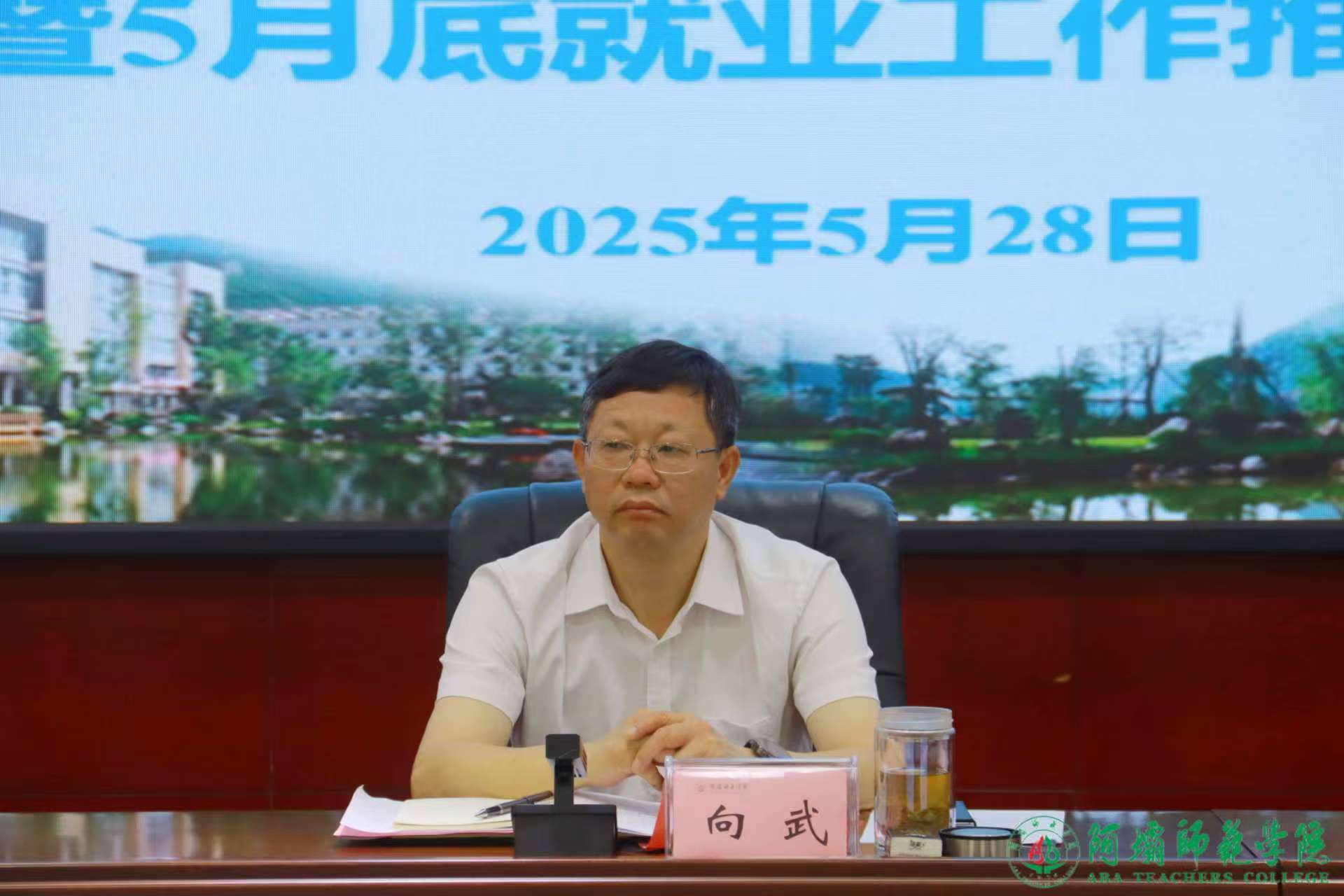【本网讯】5月28日9:30,我校在行政楼二楼会议室召开2025年春季学期第四次学生工作例会暨5月底就业工作推进会。学校党委副书记、校长向武,党委副书记宋弘,党委常委、副校长刘伟出席会议。会议由宋弘主持。