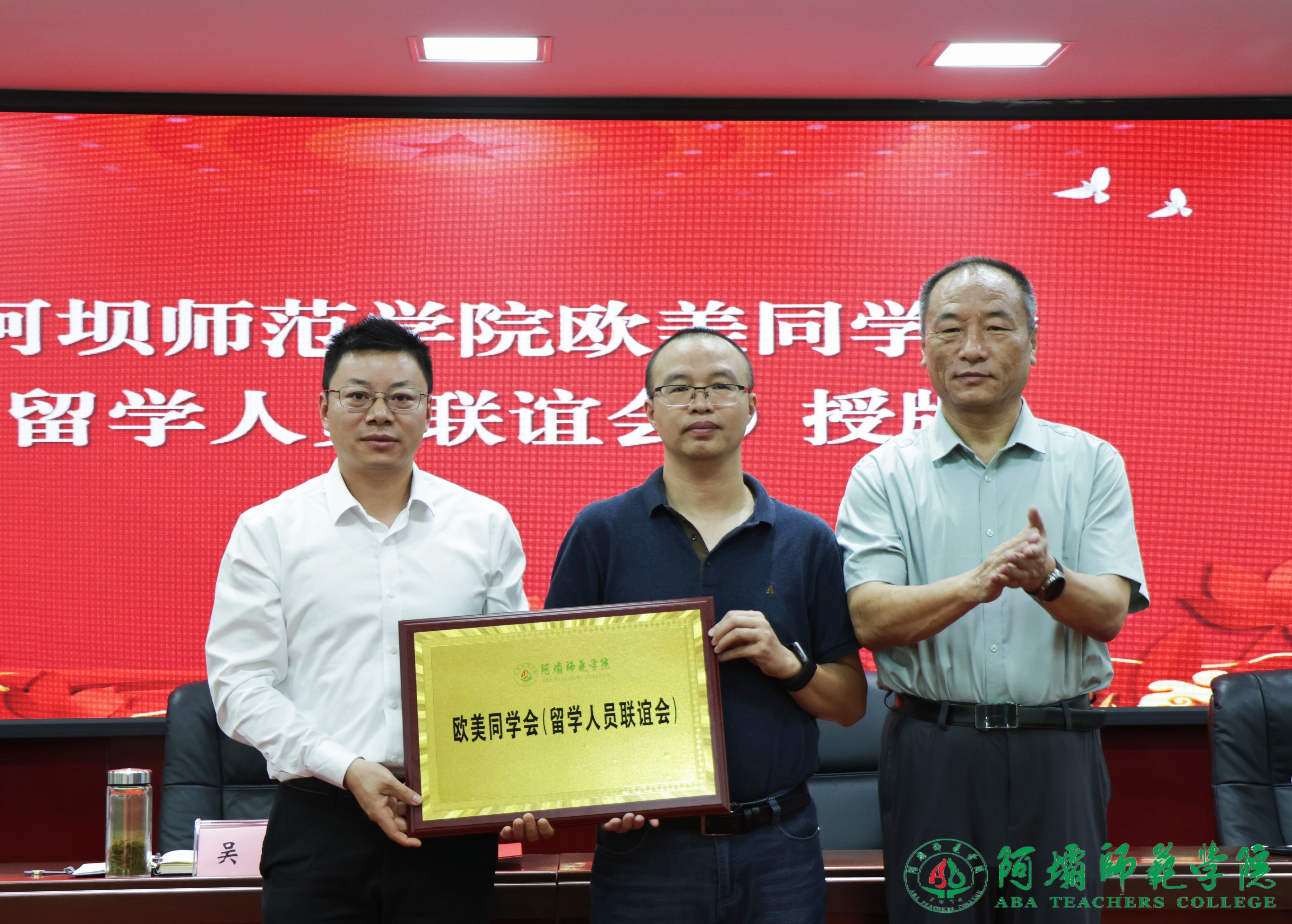 吴昊为第一届留联会会长、副会长、秘书长、副秘书长颁发聘书。随后,吴昊与胡恒为阿坝师范学院欧美同学会(留学人员联谊会)授牌。阿坝师范学院欧美同学会(留学人员联谊会)第一届会长袁甲作表态发言。