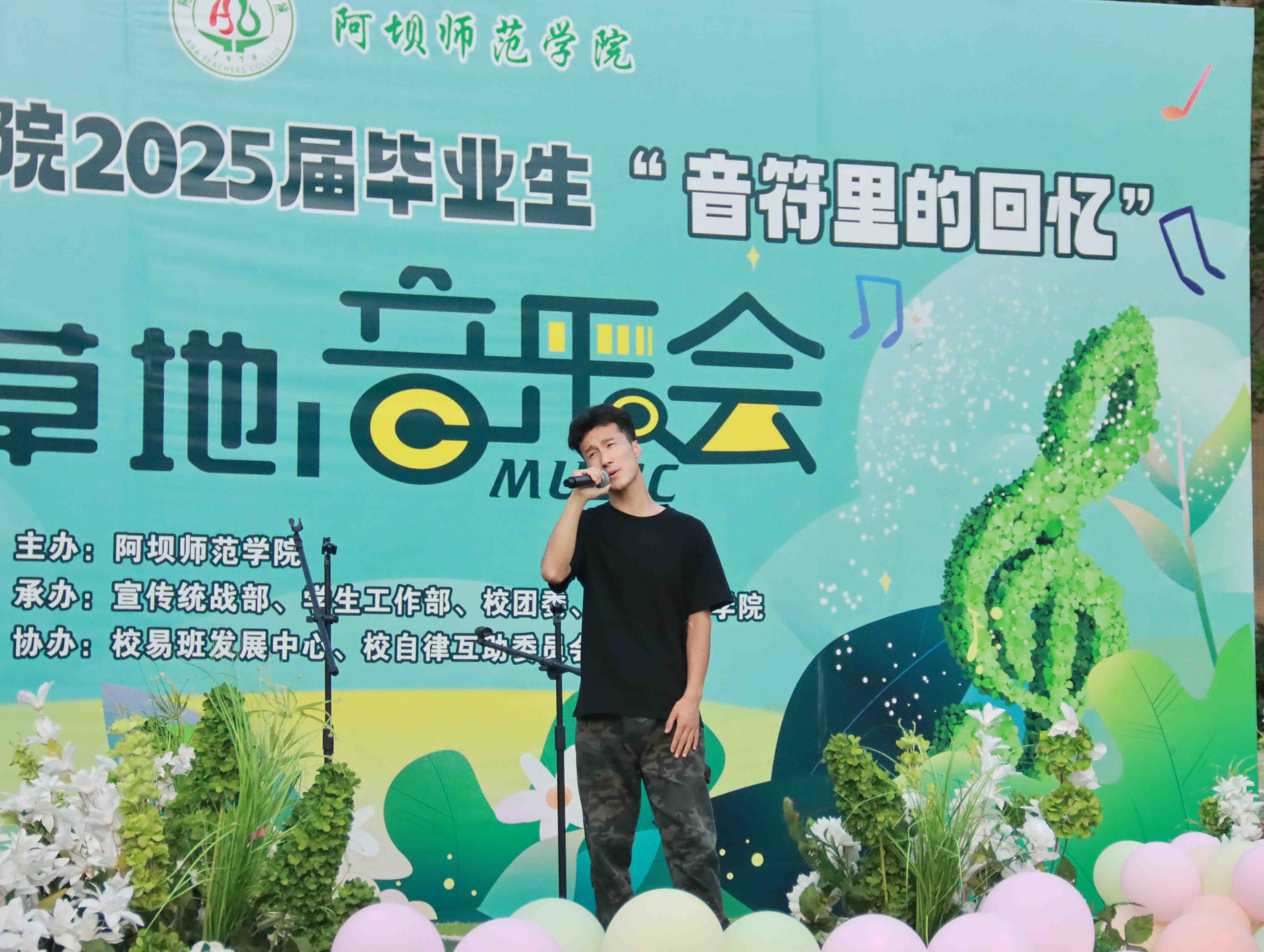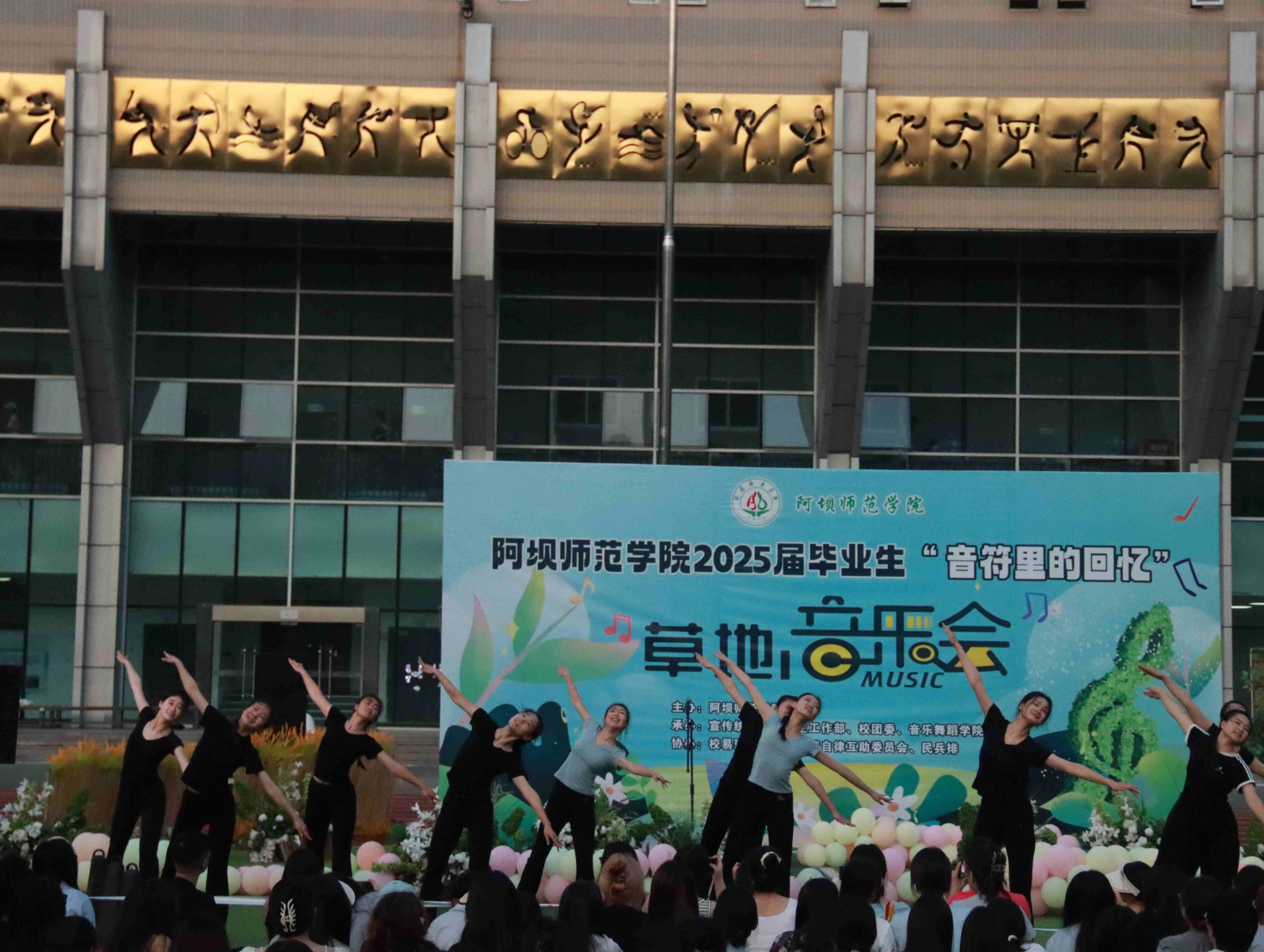 【本网讯】6月16日晚,阿坝师范学院的校园里绿草如茵,歌声飞扬。一场主题为“音符里的回忆”的草地音乐会在田径场顺利举行,为2025届毕业生们送上了一份特别的毕业礼物,也让他们在熟悉的旋律中重温大学时光,留下难忘的美好回忆。