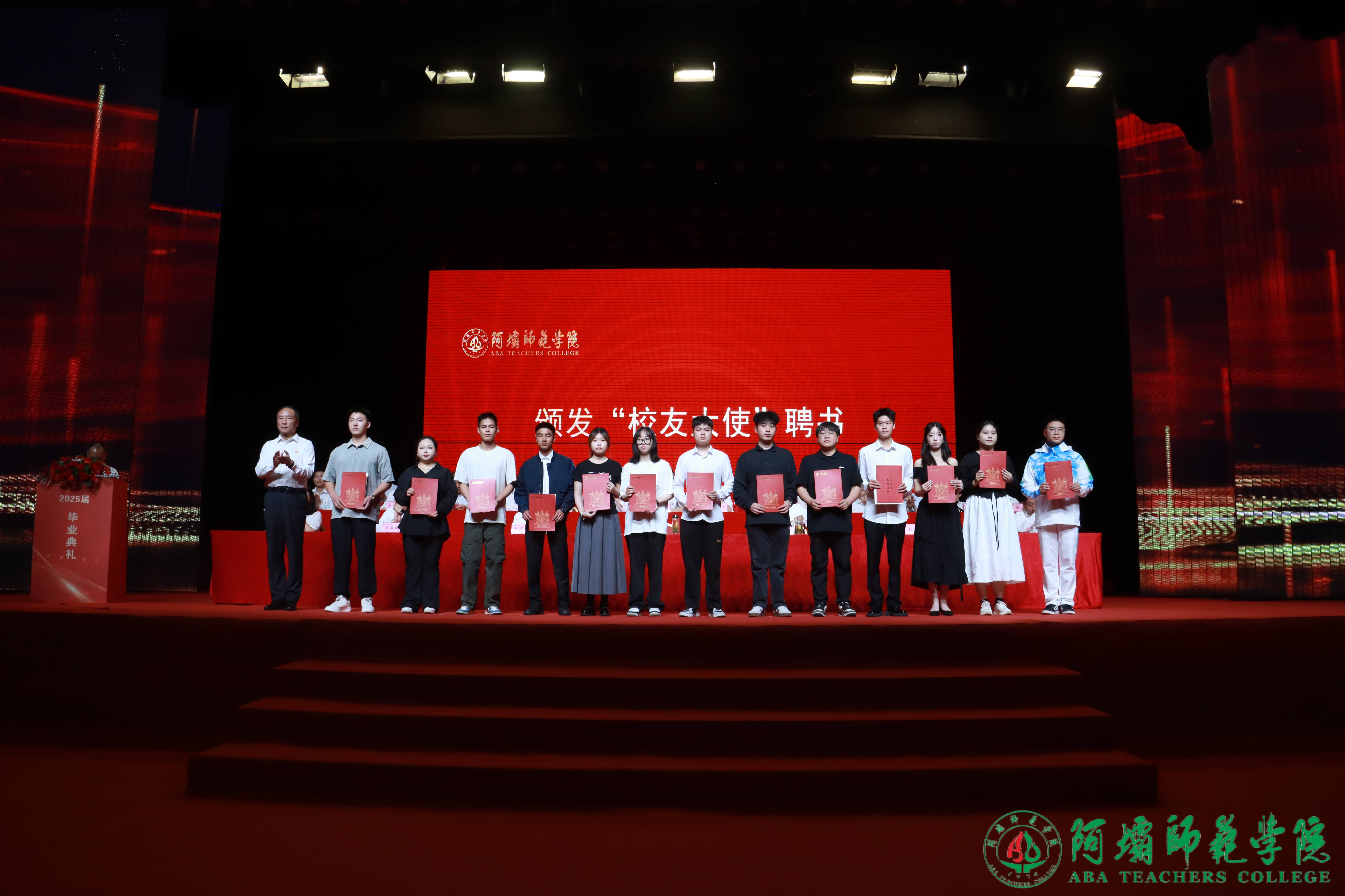 会上,学校对2025届十佳大学生、优秀大学毕业生、国家奖学金获得者、考研升学毕业生进行了表彰,并为68名校友大使颁发了聘书。