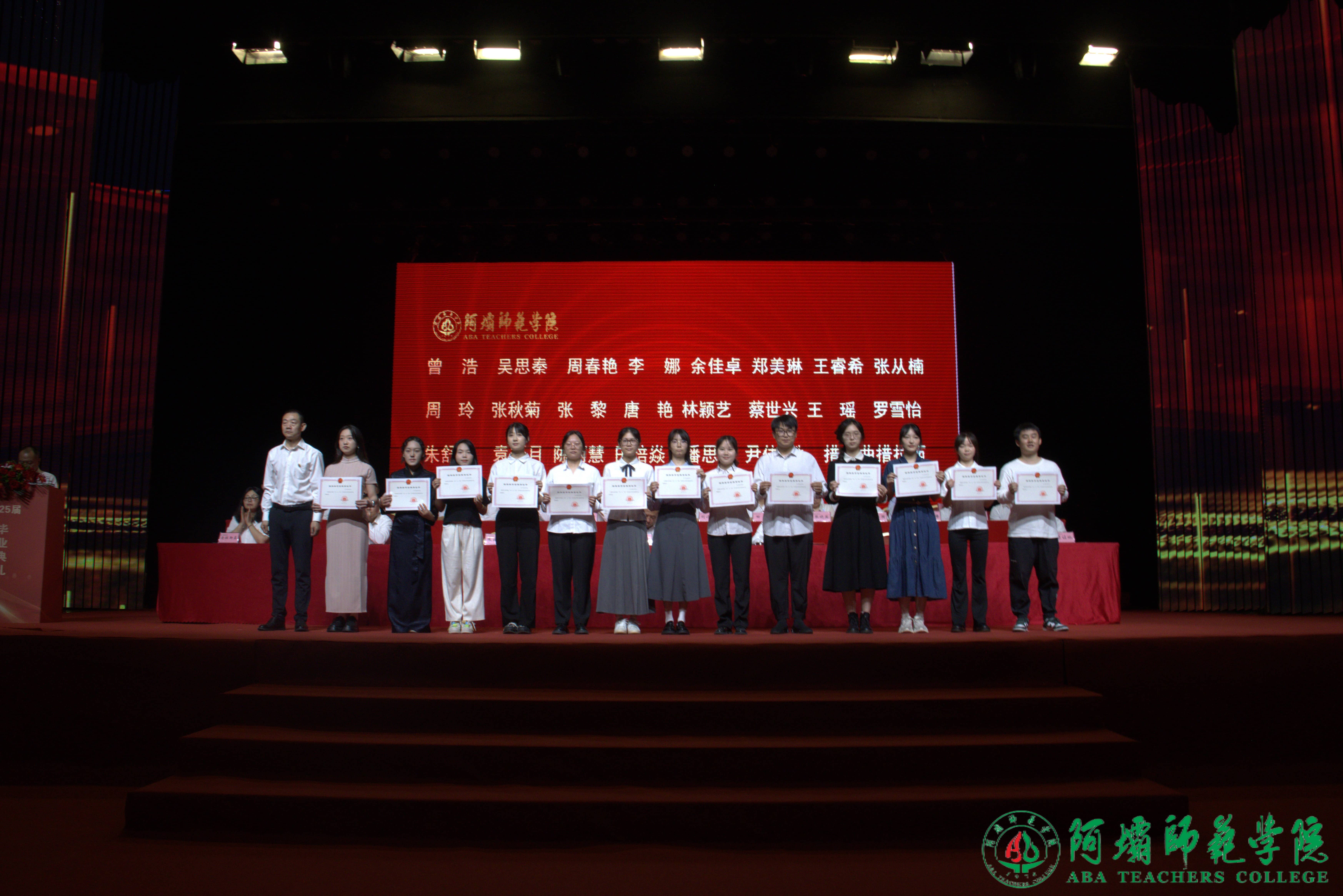(图:尕让他为校级优秀大学毕业生颁奖)