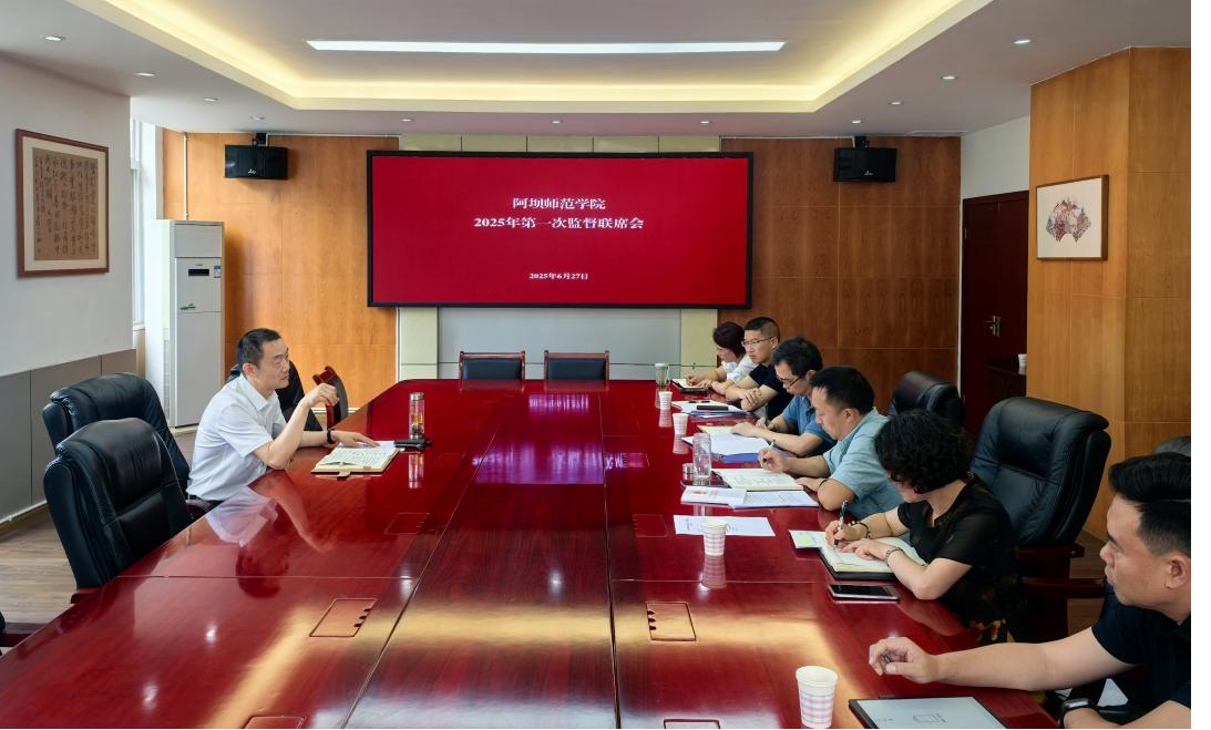 【本网讯】为进一步提升监督效能,构建党内监督为主导、各类监督贯通协调“大监督”格局的形成,6月27日上午,我校召开2025年第一次监督联席会议。省纪委监委驻阿坝师范学院纪检监察组组长、党委副书记、纪委书记朱建军主持会议。