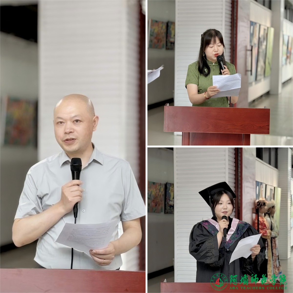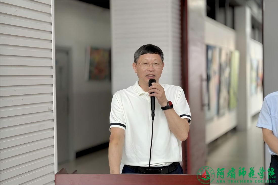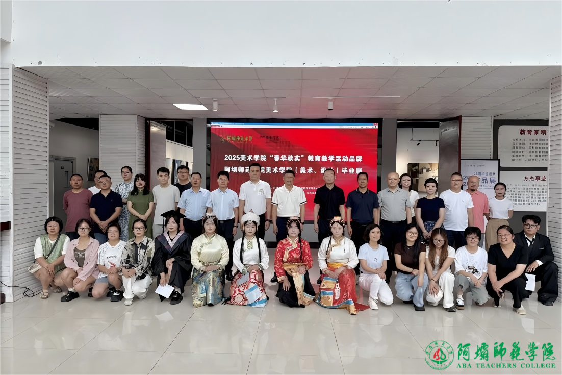 【本网讯】2025年6月18日上午,阿坝师范学院美术学院隆重举行“春华秋实”教育教学活动品牌暨2025届毕业作品展开幕式。学校党委副书记、校长向武,省纪委监委驻校纪检监察组组长、党委副书记、纪委书记朱建军出席开幕式,相关职能部门主要负责人、美术学院全体领导班子、教师代表、各年级学生代表及2025届毕业生参加毕业展开幕式。