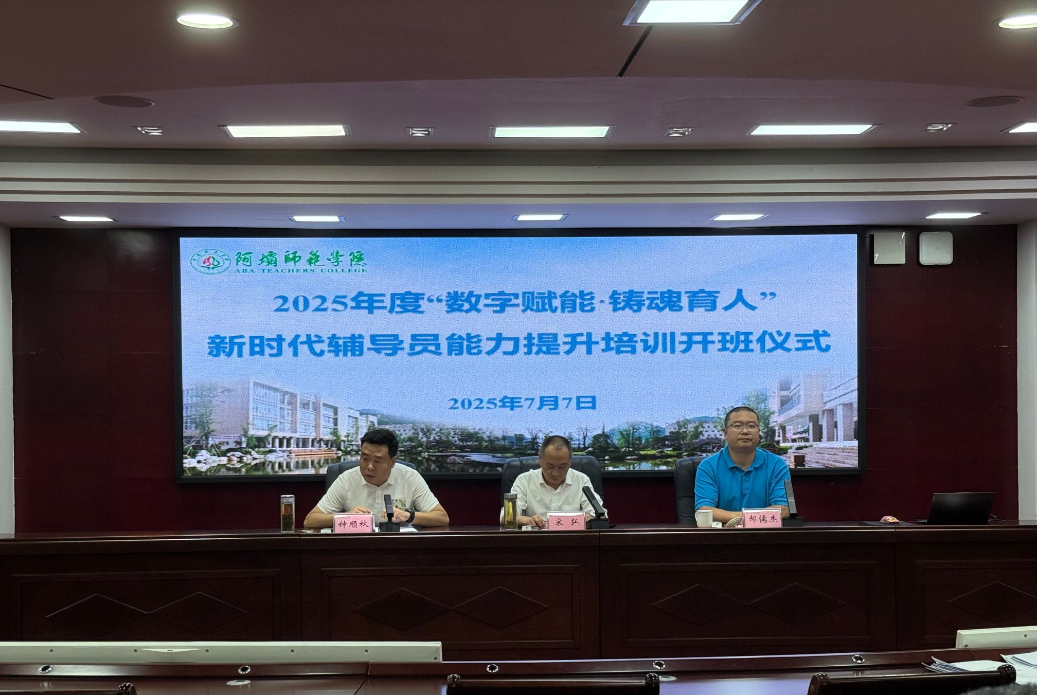 【本网讯】7月7日上午,阿坝师范学院2025年度“数字赋能·铸魂育人”新时代辅导员能力提升培训开班仪式在行政楼二楼会议室顺利举行,学校党委副书记宋弘出席仪式并讲话,学生工作部、人事处及全体培训班学员参加仪式。