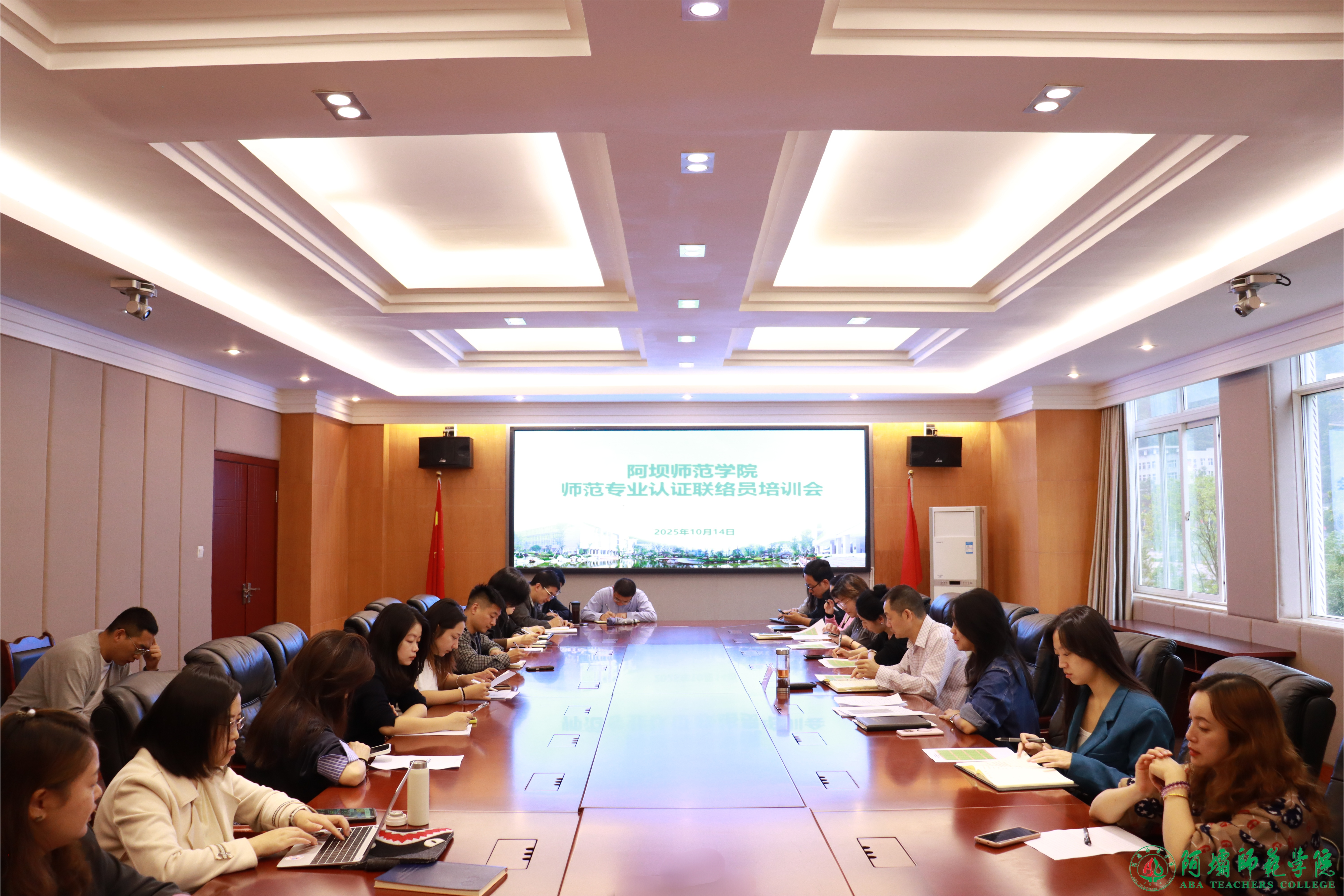 【本网讯】为进一步做好师范类专业二级认证专家进校保障工作,10月14日9:00,我校在行政406会议室组织召开师范类专业认证联络员培训会。省纪委监委驻阿坝师范学院纪检监察组组长、党委副书记、纪委书记朱建军,全体师范类专业二级认证联络员参加会议,会议由党政办公室副主任牟剋蓉主持。
