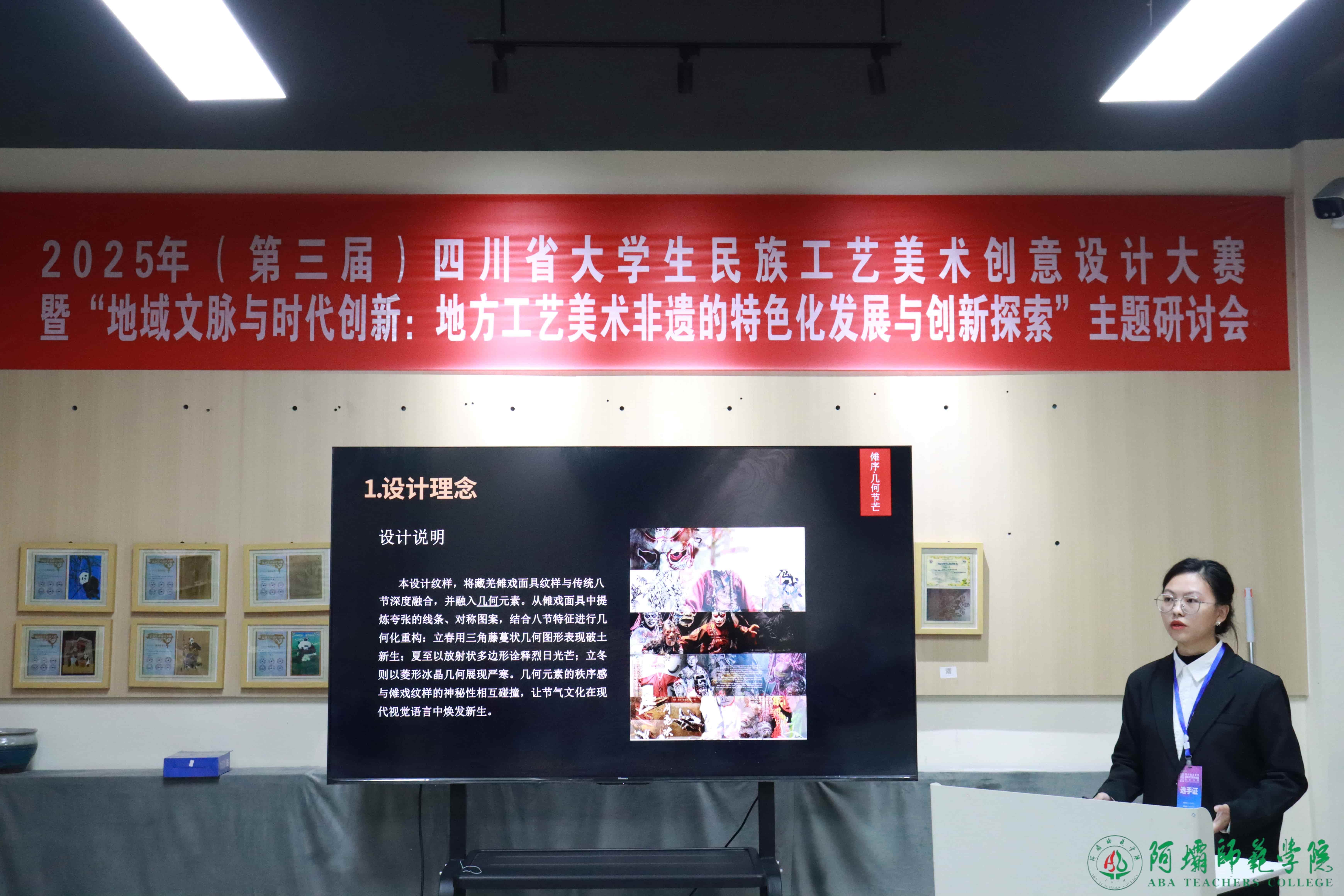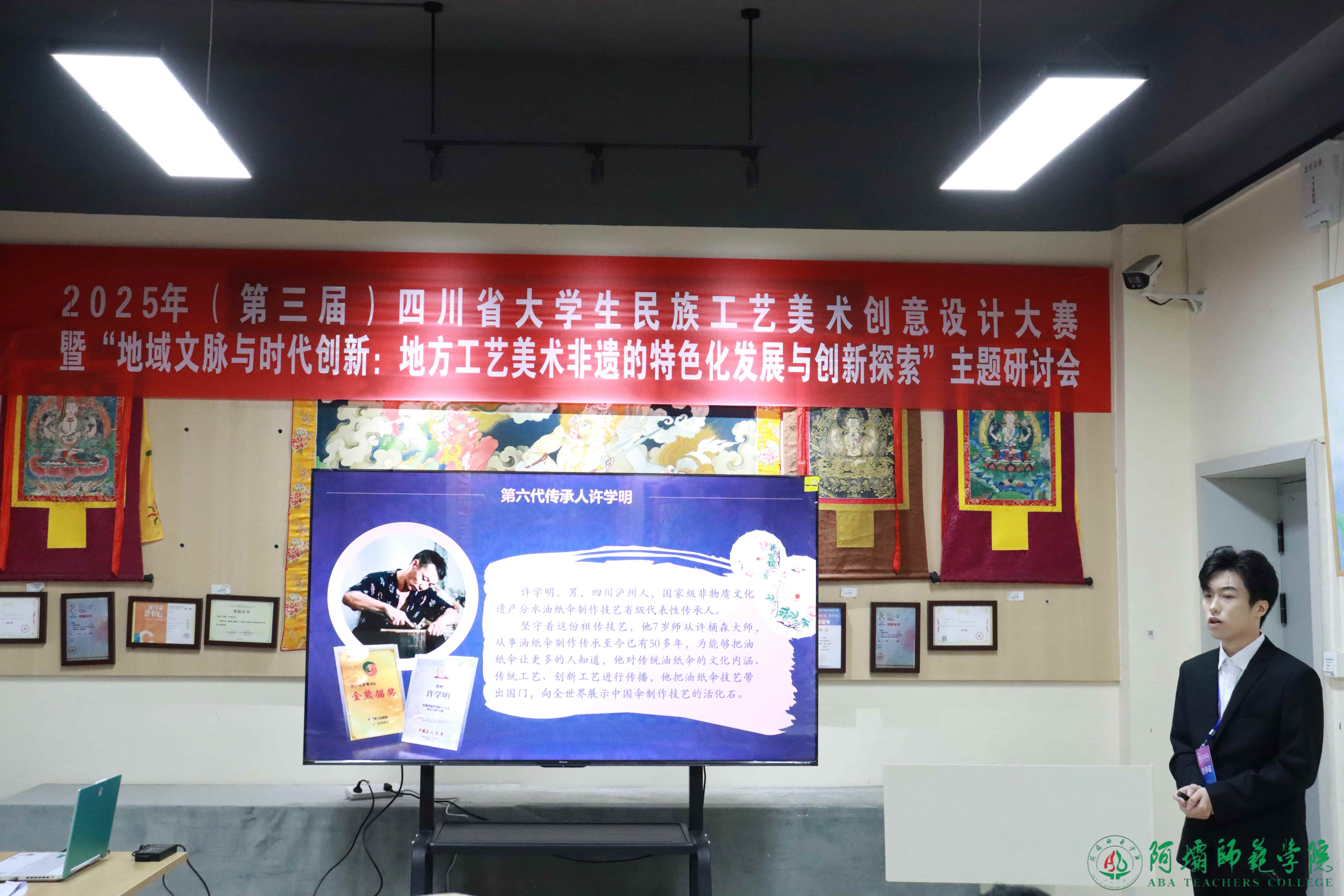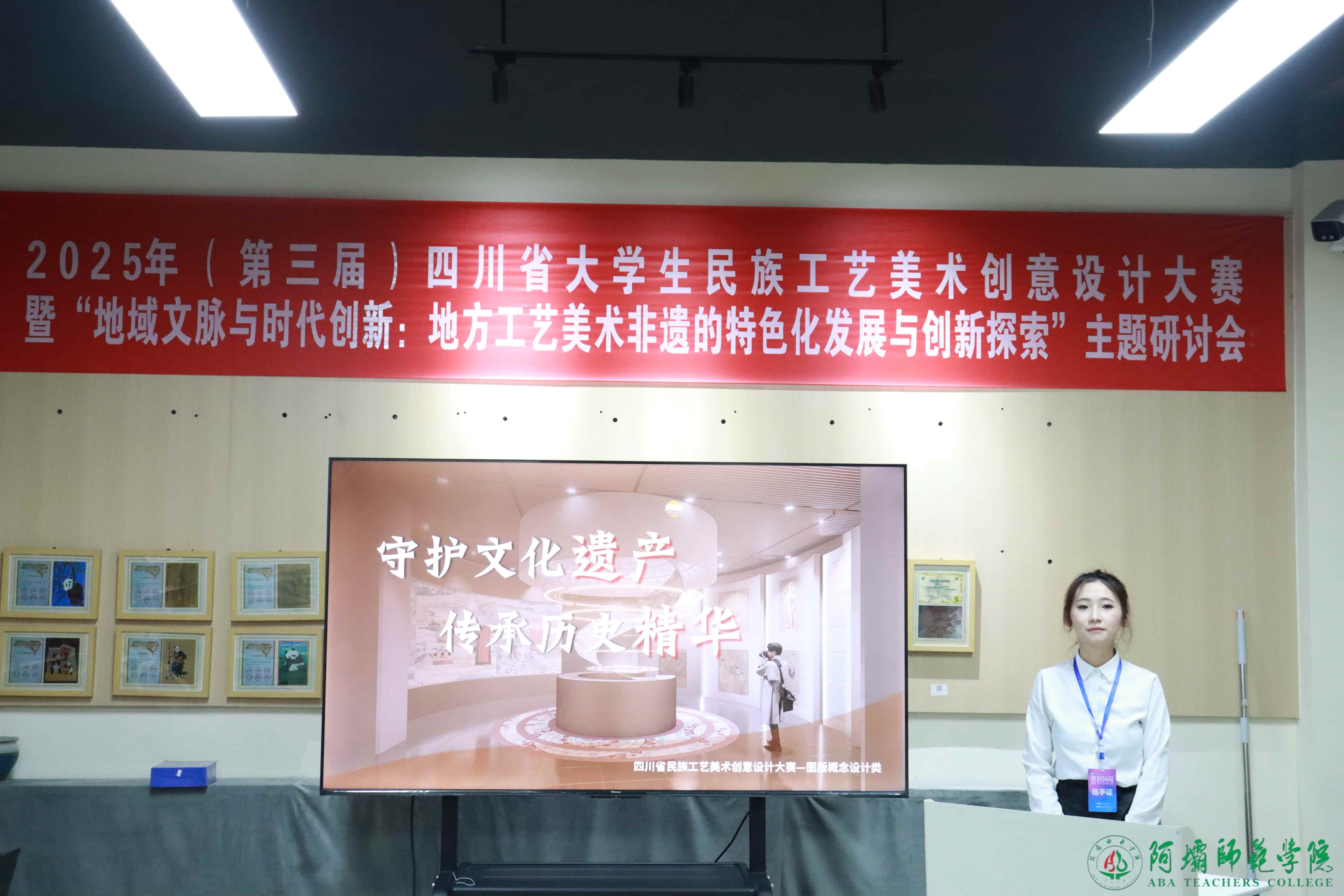 【本网讯】10月18日,由四川省教育厅主办、我校承办、阿坝州文化馆(阿坝州非遗中心)协办的“创意工美、非遗赋能”2025(第三届)四川省大学生民族工艺美术创意设计大赛决赛在我校举行。