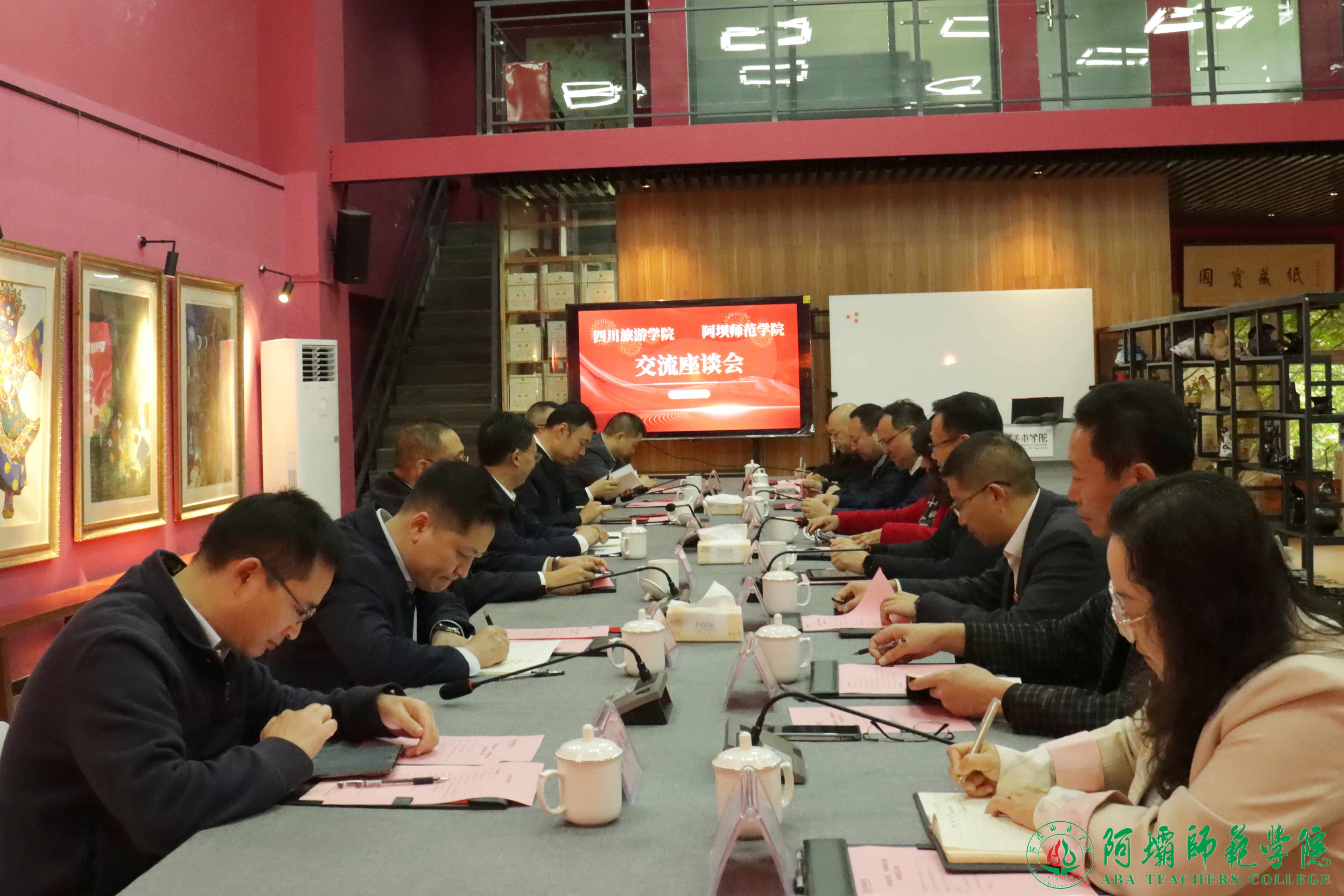 参加此次交流活动的还有四川旅游学院党委常委、副校长李进军、李想,党委常委、组织部部长彭茂,党委办公室、教科处、产教融合处相关负责人;我校党委常委、副校长刘伟、张华,党政办公室、科研与学科建设处、对外合作处主要负责人,美术学院、经济与管理学院、继续教育学院相关负责人。