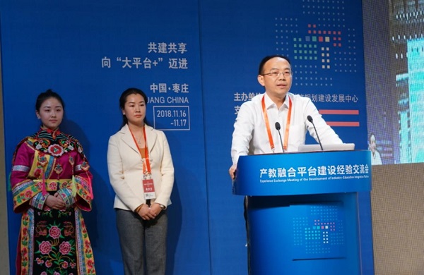 【本网讯 】11月16至17日,学校副校长毛英教授带领学校师生团队赴山东枣庄参加由教育部学校规划建设发展中心主办,山东省教育厅支持,枣庄学院承办的以“共建共享,向大平台+迈进”为主题的2018产教融合平台建设经验交流会。