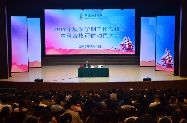 【本网讯】 9月1日上午9:00,我校2019年秋季学期工作安排暨本科合格评估动员大会在南苑剧场召开。学校党委副书记、校长向武,党委副书记、工会主席孙建平,党委副书记、纪委书记雷健,副校长凌道明、副校长甲任、副校长毛英及全体中层干部和教职员工参加会议。会议由孙建平主持。