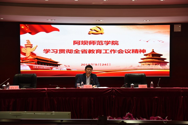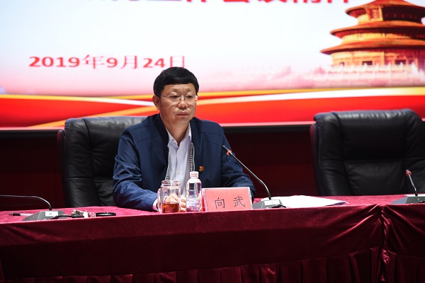 向武传达了9月19日在成都召开的全省教育工作会议精神。他指出,省委教育工委书记,教育厅党组书记、厅长李江强调在全国各族人民喜迎新中国成立70周年、共享伟大荣光的豪迈时刻召开,安排在全党上下深入开展“不忘初心、牢记使命”主题教育的关键时刻举行,目的是“重整行装再出发”,在凝视出发点中重温初心,在回望来时路中铭记使命,在展望未来梦想中明确任务。